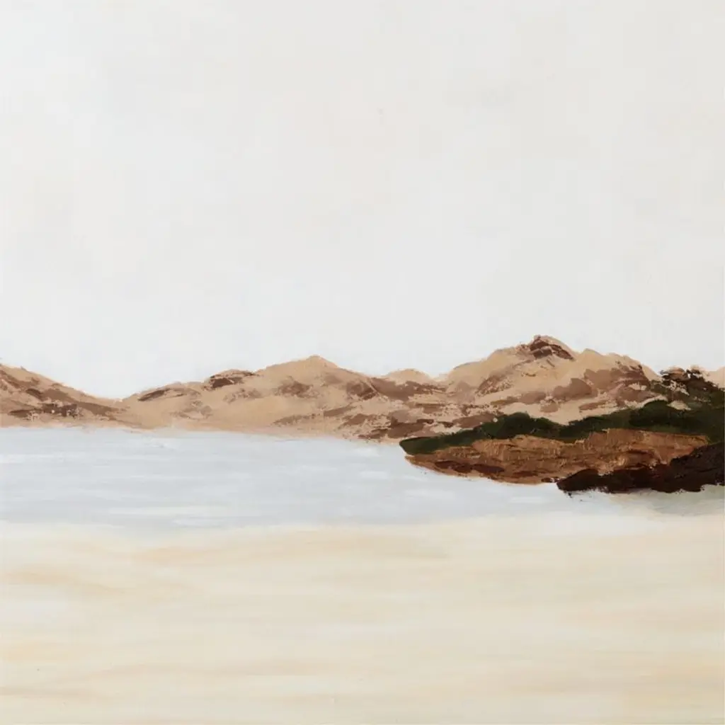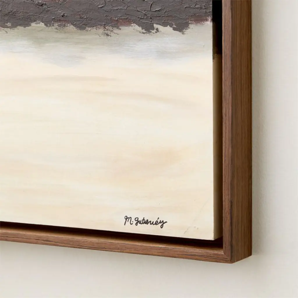 Marcela Gutierrez's "Whispers of the Dunes" captures the tranquility of a desert landscape. Soft, sweeping brushstrokes of beige, brown and black create an impression of distant dunes under a pale, expansive sky. The subtle gradations of color and delicate interplay of light and shadow evoke a sense of calm and vastness. CB2 exclusive.Marcela Gutierrez is an Ottawa-based artist who uses Modern, Scandinavian and Japanese influences to ignite her creativity and shape her unique vision. Born and raised in Colombia, Gutierrez draws inspiration from her travels as well as her diverse background. "This eclectic mix of influences drives me to create art that embodies comfort, serenity and timelessness, inviting viewers to embark on a contemplative journey of visual and emotional discovery," the artist explains.