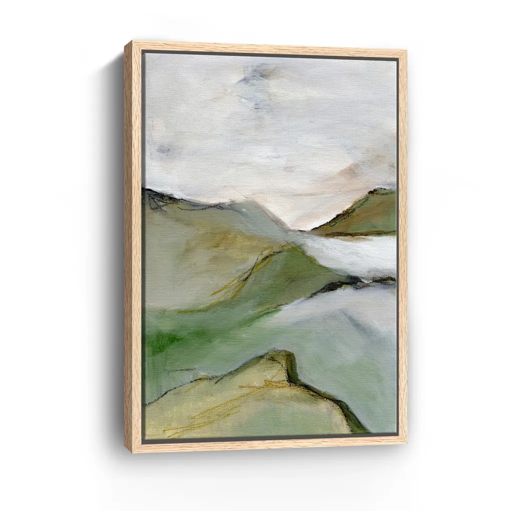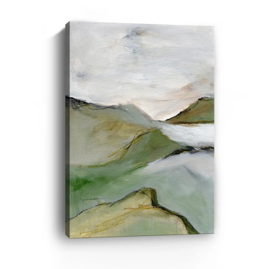 This tranquil landscape canvas print captures the quiet beauty of rolling hills, misty meadows, or forest silhouettes in muted green and beige hues. Perfect for adding a touch of natural elegance to modern or rustic interiors. Our Gallery Wrap Canvas Prints are proudly assembled with high quality materials in California, USA. Each piece is printed on a thick, archival grade canvas using Giclee technology. It is then hand-stretched by our experienced artisans over solid wood bars, which will not warp over time. The final product is a piece personally crafted for you to confidently display on your wall. Care and Assembly: Ensure that the location of your piece has little to no exposure to heat, sunlight, and moisture. Wipe clean, only if needed. Each piece includes hanging hardware to hang on your wall vertically.
