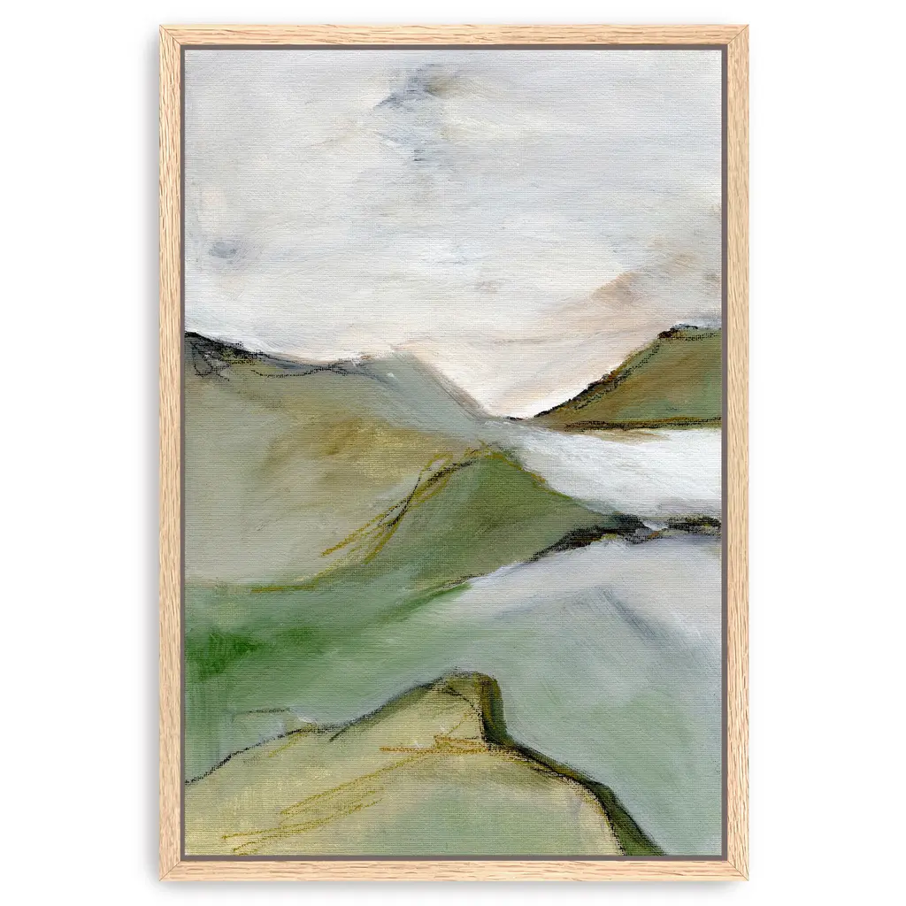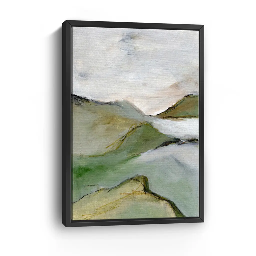 This tranquil landscape canvas print captures the quiet beauty of rolling hills, misty meadows, or forest silhouettes in muted green and beige hues. Perfect for adding a touch of natural elegance to modern or rustic interiors. Our Gallery Wrap Canvas Prints are proudly assembled with high quality materials in California, USA. Each piece is printed on a thick, archival grade canvas using Giclee technology. It is then hand-stretched by our experienced artisans over solid wood bars, which will not warp over time. The final product is a piece personally crafted for you to confidently display on your wall. Care and Assembly: Ensure that the location of your piece has little to no exposure to heat, sunlight, and moisture. Wipe clean, only if needed. Each piece includes hanging hardware to hang on your wall vertically.