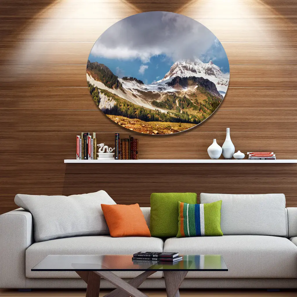 Bring Contemporary Abstraction to your home with this large Circle Metal wall art. This Whistler Mountain British Columbia Metal Artwork makes it the focal point of any room or office. - White Gloss Coating ensures colors are extra vibrant with light reflection.- Aluminum grade Sheet Metal with 1 inch mounting frame on the back giving the illusion that the artwork is floating on the wall..- Mounting Brackets are included along with instructions.- High Quality Digital images are created directly into a glossy aluminum panel producing a stunning and captivating print into the glossy finish of the metal.- Water, Fire and Scratch resistant HD Aluminum panels.- Looks better than any photo paper and guaranteed to last at least 20 years- Easy to clean with a microfiber cloth. Colors are far superior to regular Canvas Art. - Easy to Hang