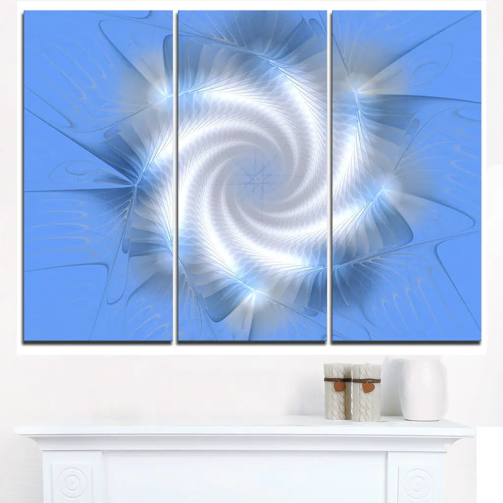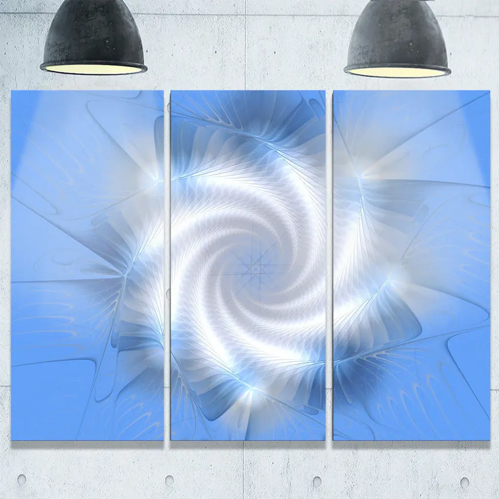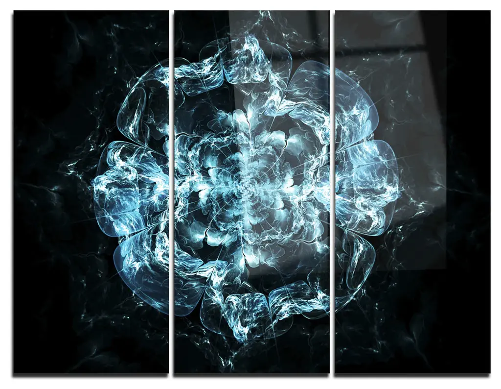 "White And Blue Fractal Star Flower" Metal Wall Art, 3 Panels, 36"x28"