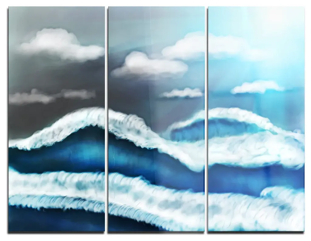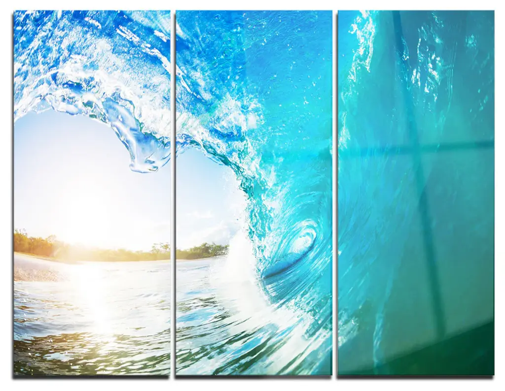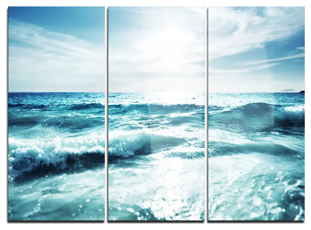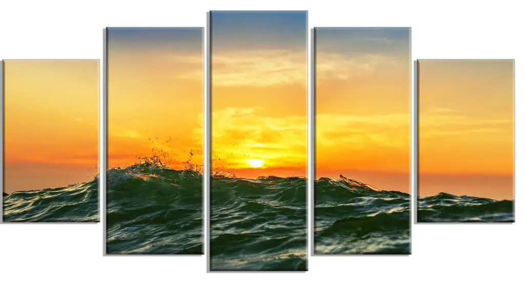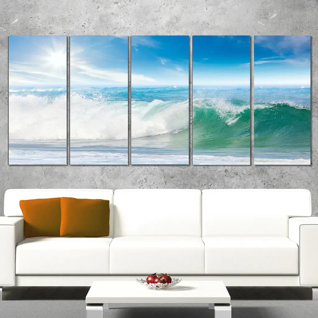 "White And Blue Waves Under Sun" Canvas Print, 5 Panels