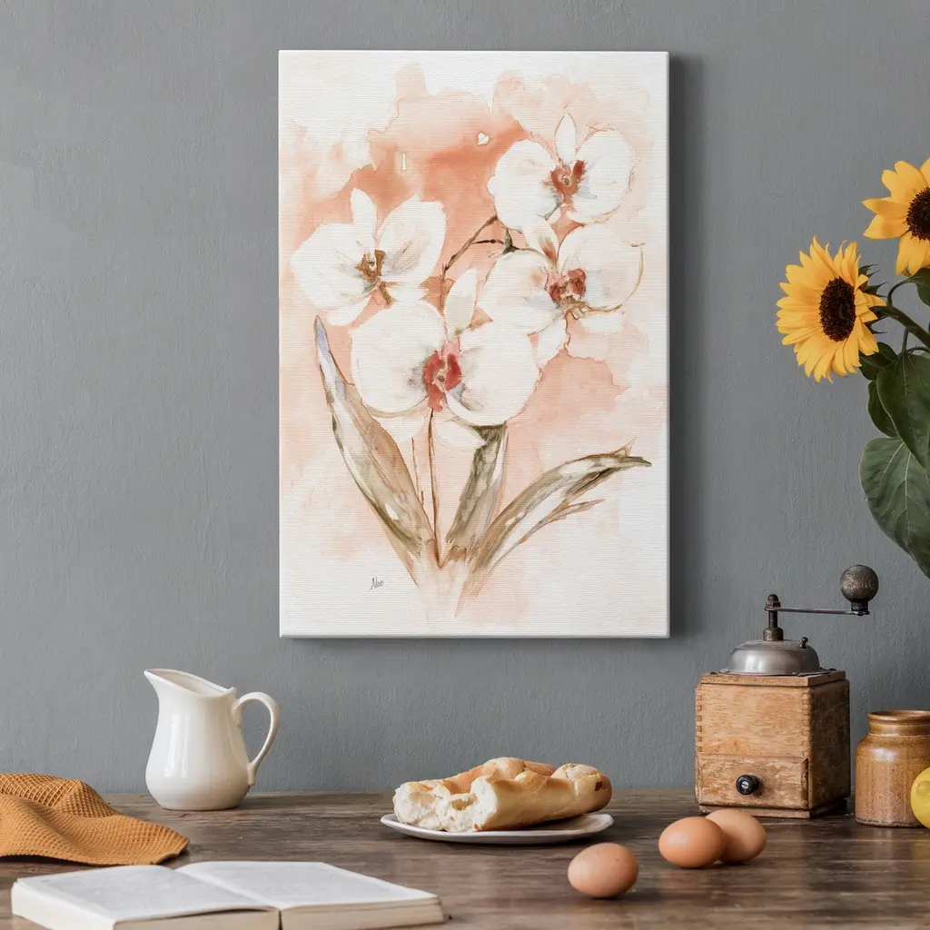 White and Coral Orchid I Premium Gallery Wrapped Canvas - Ready to Hang A premium hand stretched gallery wrapped canvas print created to last. Featuring a beveled a solid wood stretcher bar, each piece comes ready to hand 5 SIZES AVAILABLE 8''X12'' - Overall Size 16'X20'' - Overall Size 24''x32'' - Overall Size 30''x40'' - Overall Size 36''x48'' - Overall Size Each piece is made to order. Built to Last Each piece comes ready to hang Solid wood stretcher Fade and Water resistant Made domestically