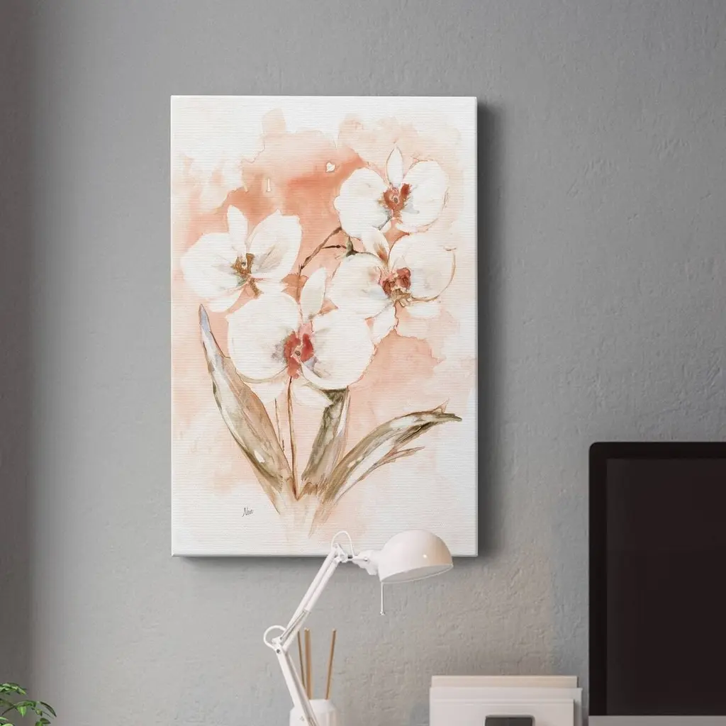 White and Coral Orchid I Premium Gallery Wrapped Canvas - Ready to Hang A premium hand stretched gallery wrapped canvas print created to last. Featuring a beveled a solid wood stretcher bar, each piece comes ready to hand 5 SIZES AVAILABLE 8''X12'' - Overall Size 16'X20'' - Overall Size 24''x32'' - Overall Size 30''x40'' - Overall Size 36''x48'' - Overall Size Each piece is made to order. Built to Last Each piece comes ready to hang Solid wood stretcher Fade and Water resistant Made domestically