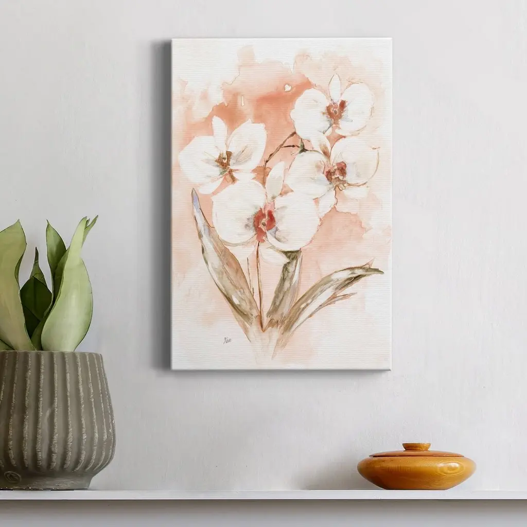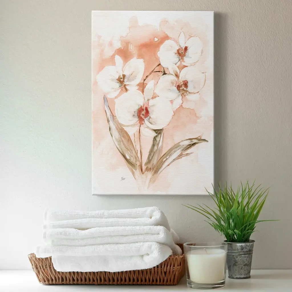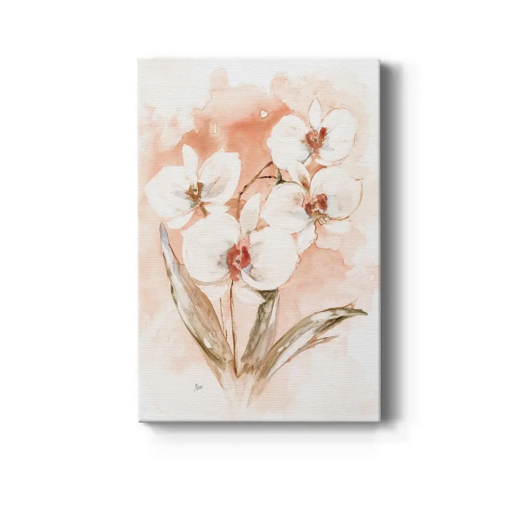 White and Coral Orchid I Premium Gallery Wrapped Canvas - Ready to Hang A premium hand stretched gallery wrapped canvas print created to last. Featuring a beveled a solid wood stretcher bar, each piece comes ready to hand 5 SIZES AVAILABLE 8''X12'' - Overall Size 16'X20'' - Overall Size 24''x32'' - Overall Size 30''x40'' - Overall Size 36''x48'' - Overall Size Each piece is made to order. Built to Last Each piece comes ready to hang Solid wood stretcher Fade and Water resistant Made domestically