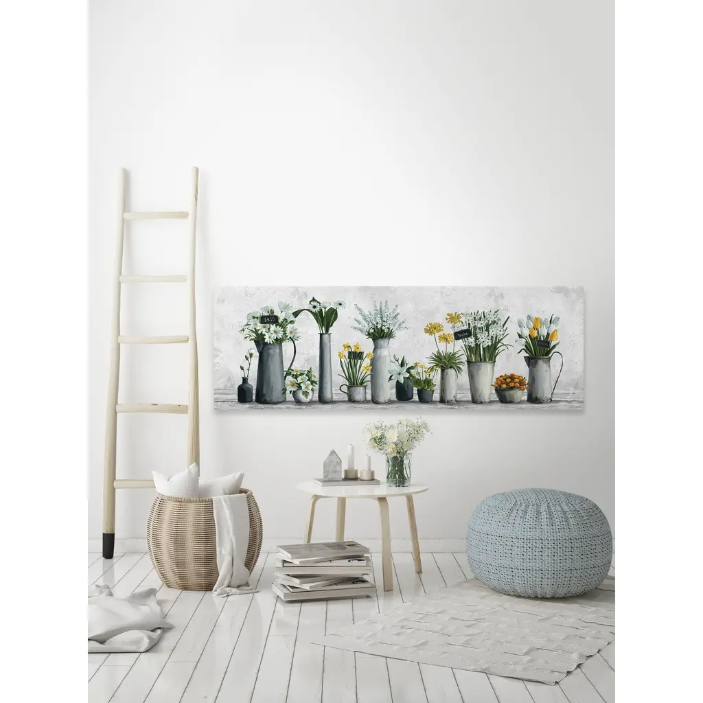 An alluring still life of yellow and white flora of multiple kinds. This eye-catching yet demure acrylic piece will be a beautiful addition to any room in your home. Proudly made in the USA, this piece is printed on canvas before it's stretched over non-warping wooden bars for a gallery-wrapped look. With wall-mounting hooks included, this artful accent is ready to hang up as soon as it reaches your front door. • Fine art canvas print from the Marmont Hill Art Collective • Professionally hand stretched • Gallery wrapped in sustainable, non-warping wood • Arrives ready to hang • Made in the USA • Includes a certificate of authenticity