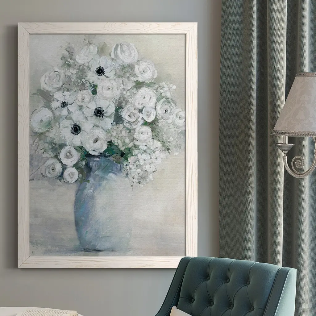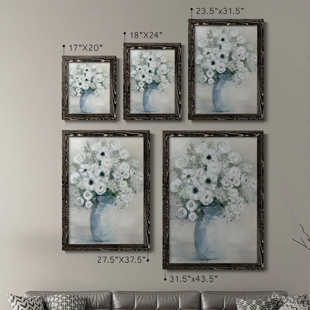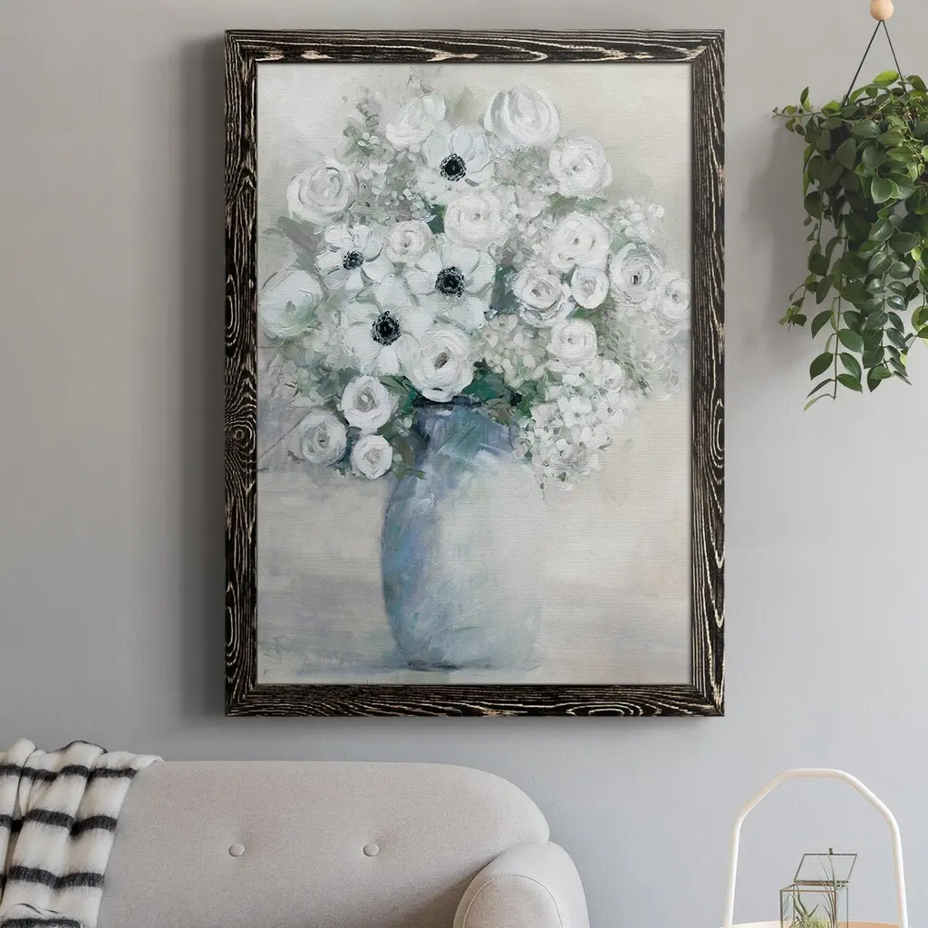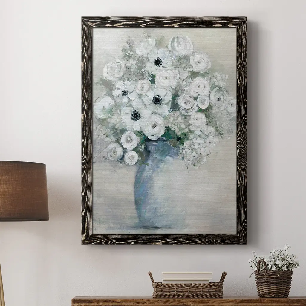 White Anemone Bouquet-Premium Framed Canvas - Ready To Hang - 27.5x37.5 - Walnut