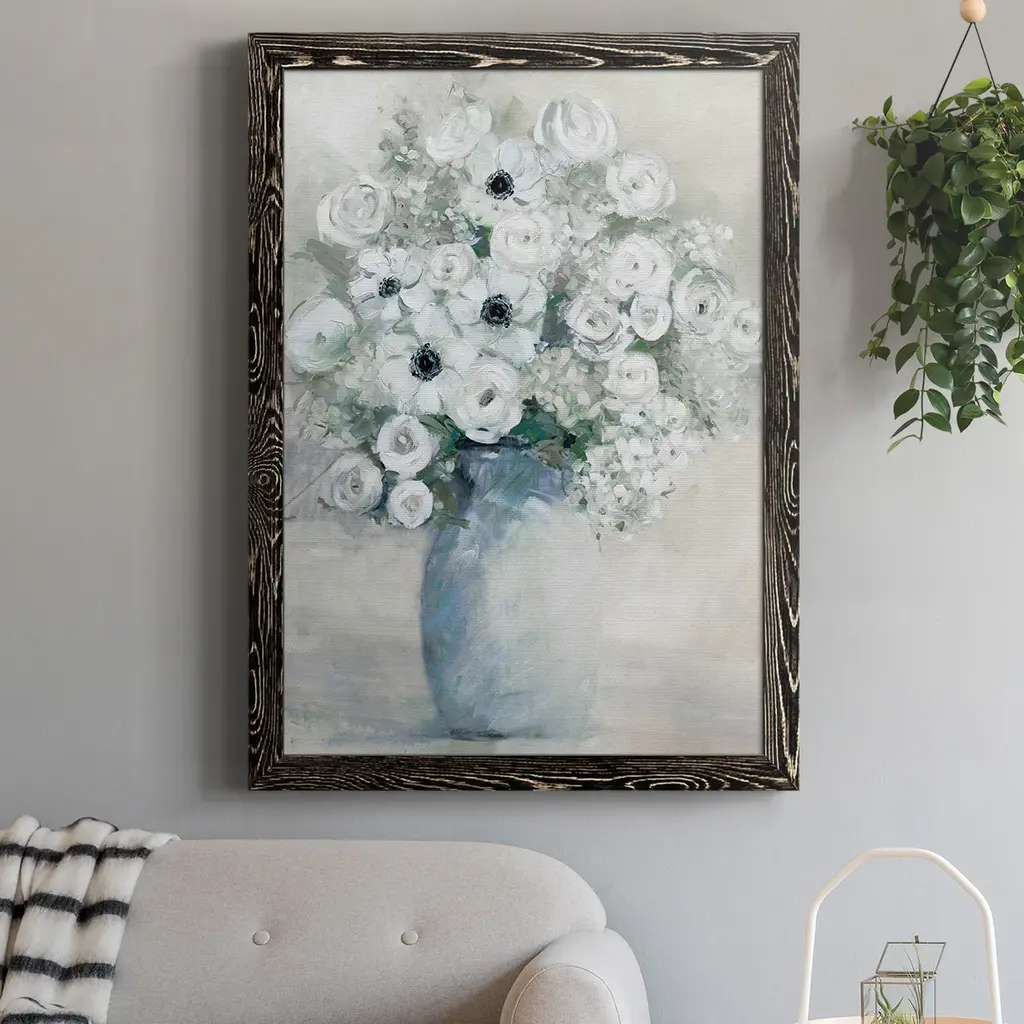 White Anemone Bouquet-Premium Framed Canvas - Ready To Hang - 31.5x43.5 - Maple