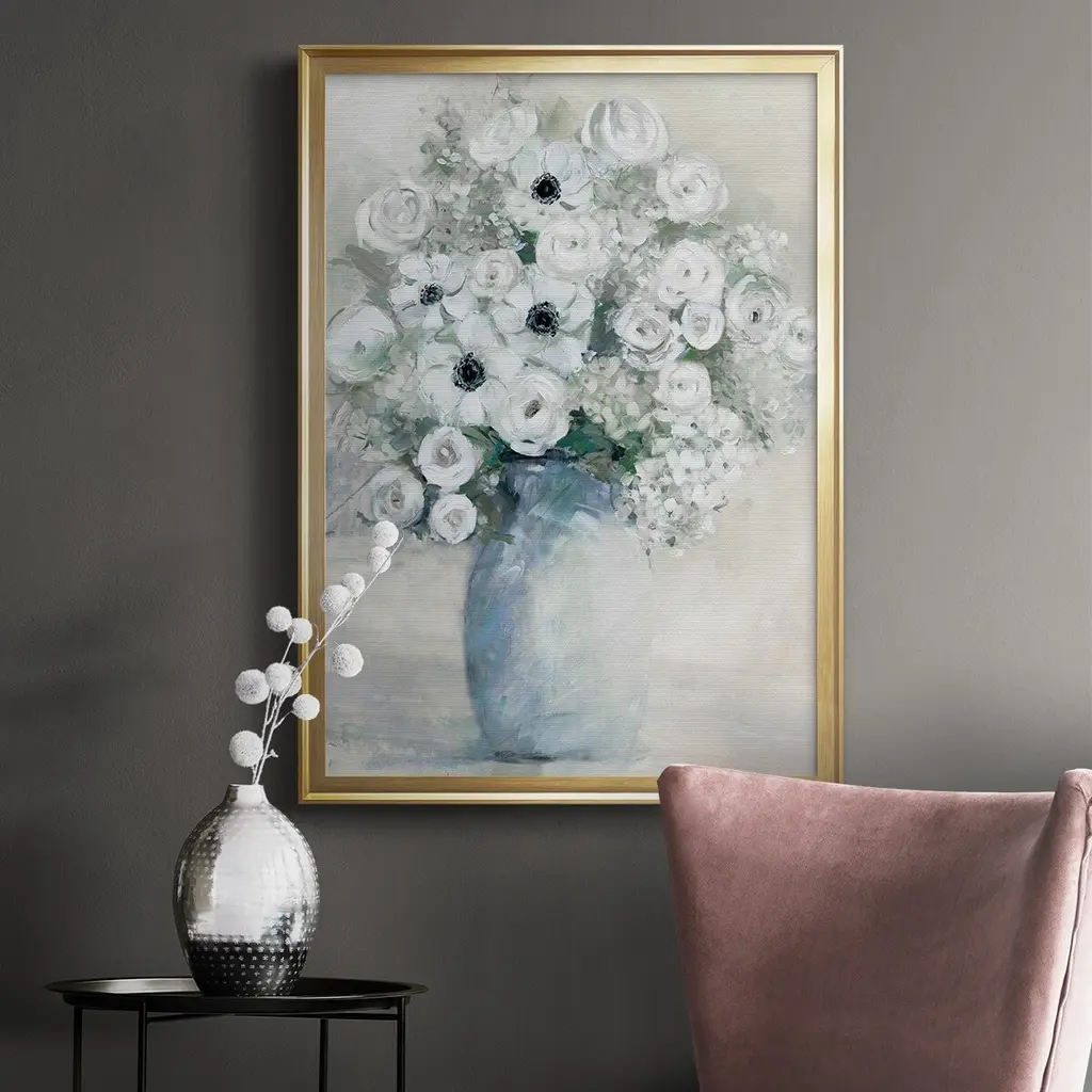 White Anemone Bouquet Premium Framed Print - Ready To Hang - 30.5x42.5 - Black