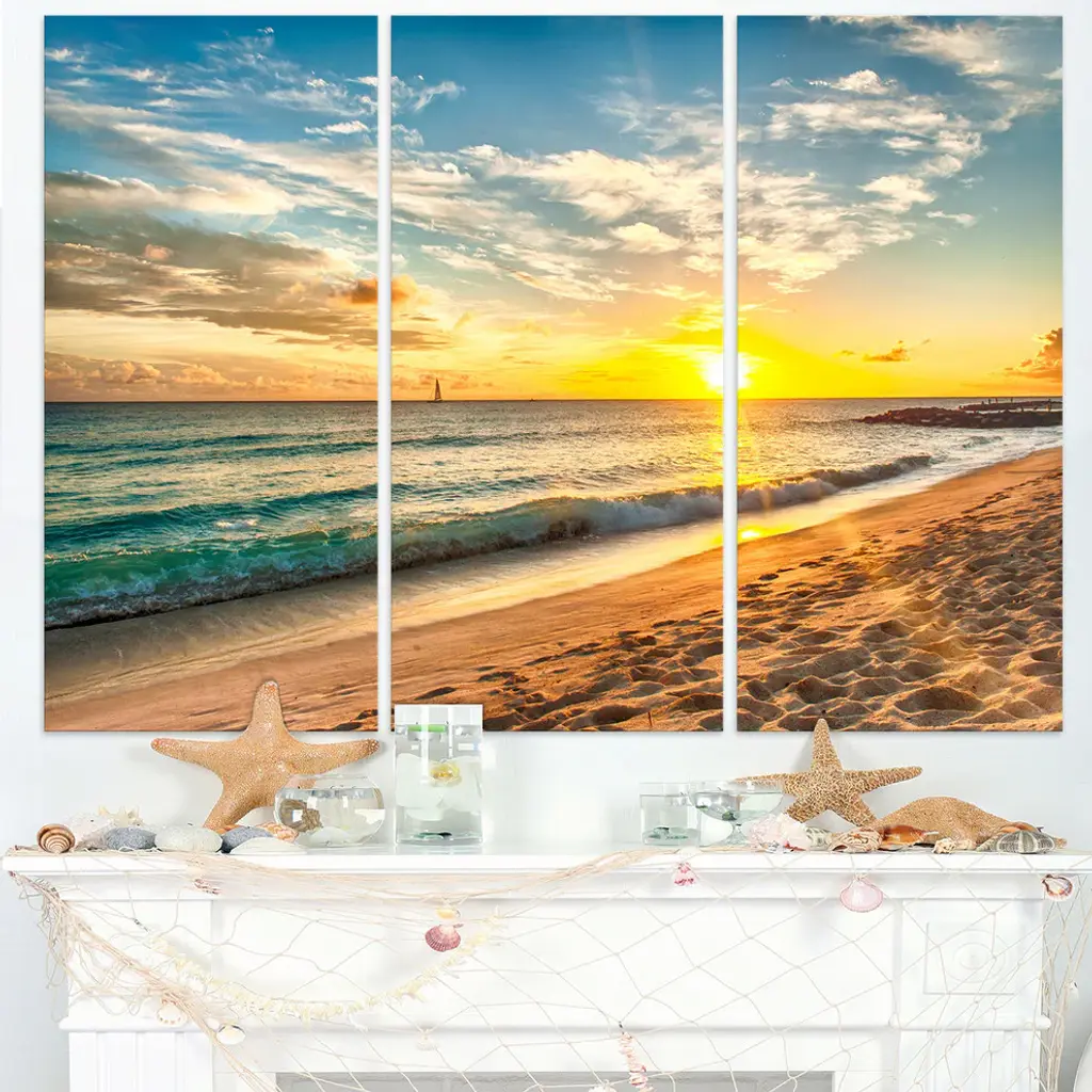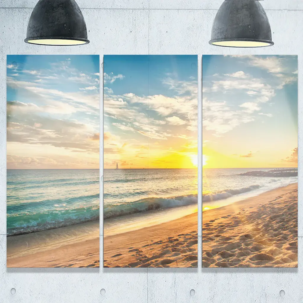 "White Beach In Island Of Barbados" Metal Wall Art, 3 Panels, 36"x28"