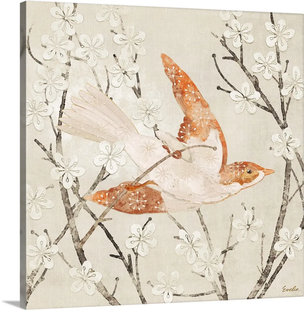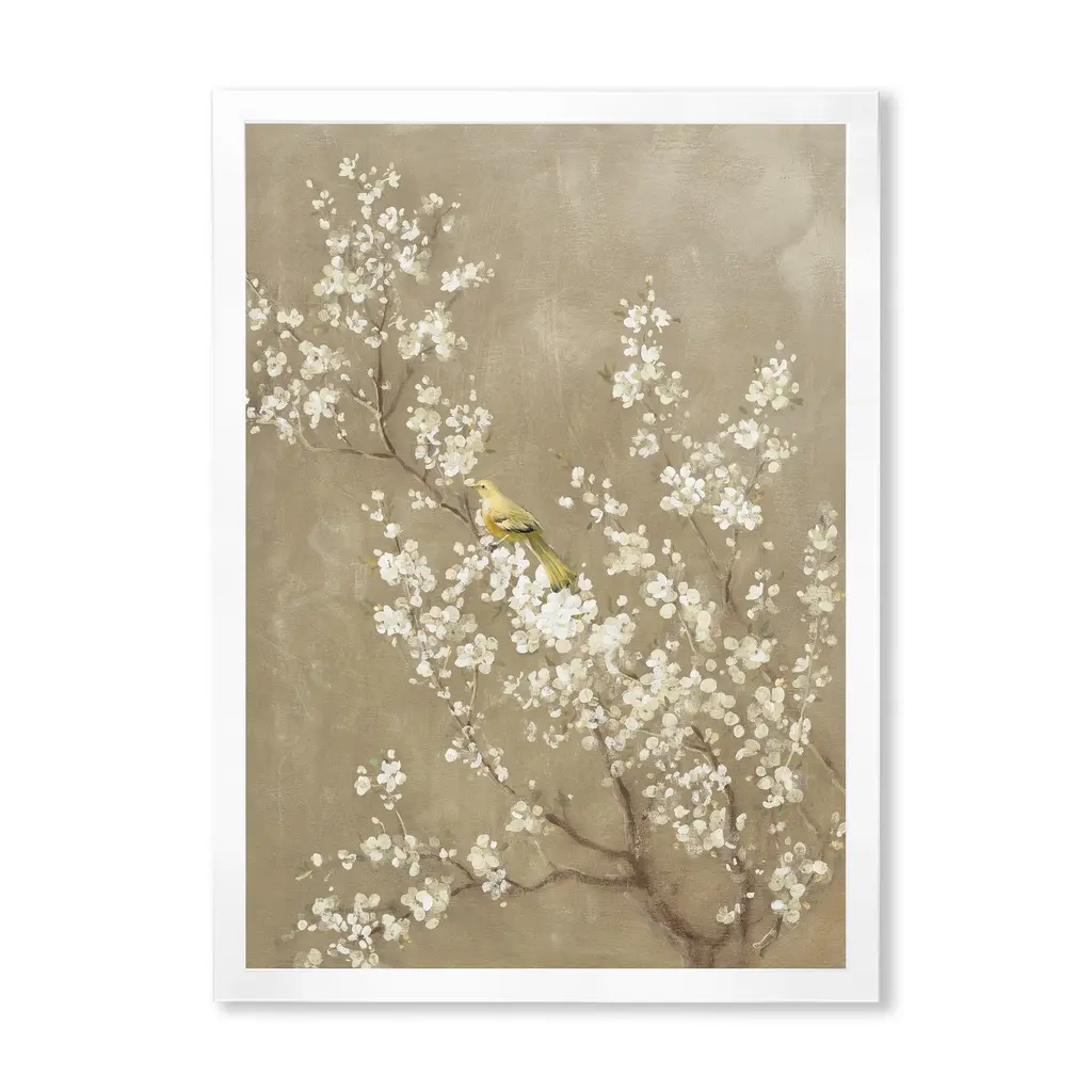 White Cherry Blossom Ii Neutral Crop Bird