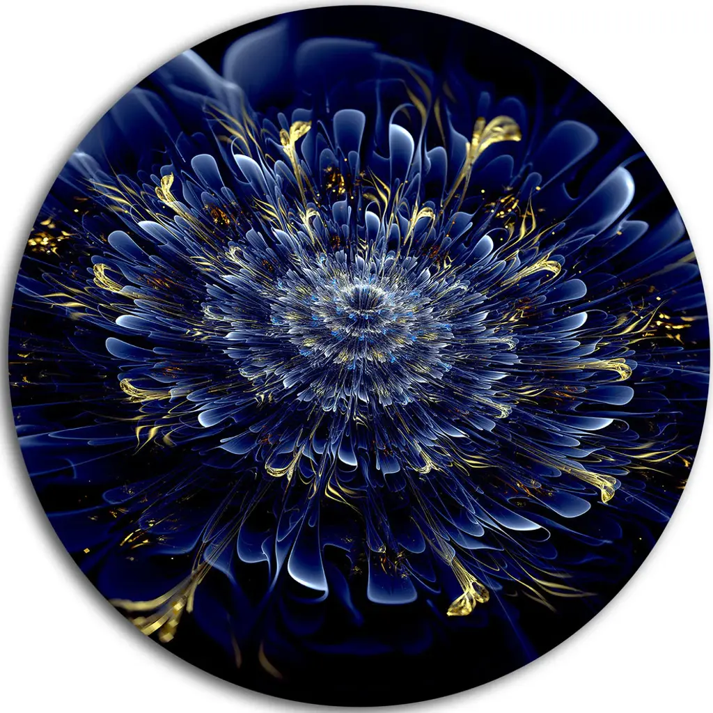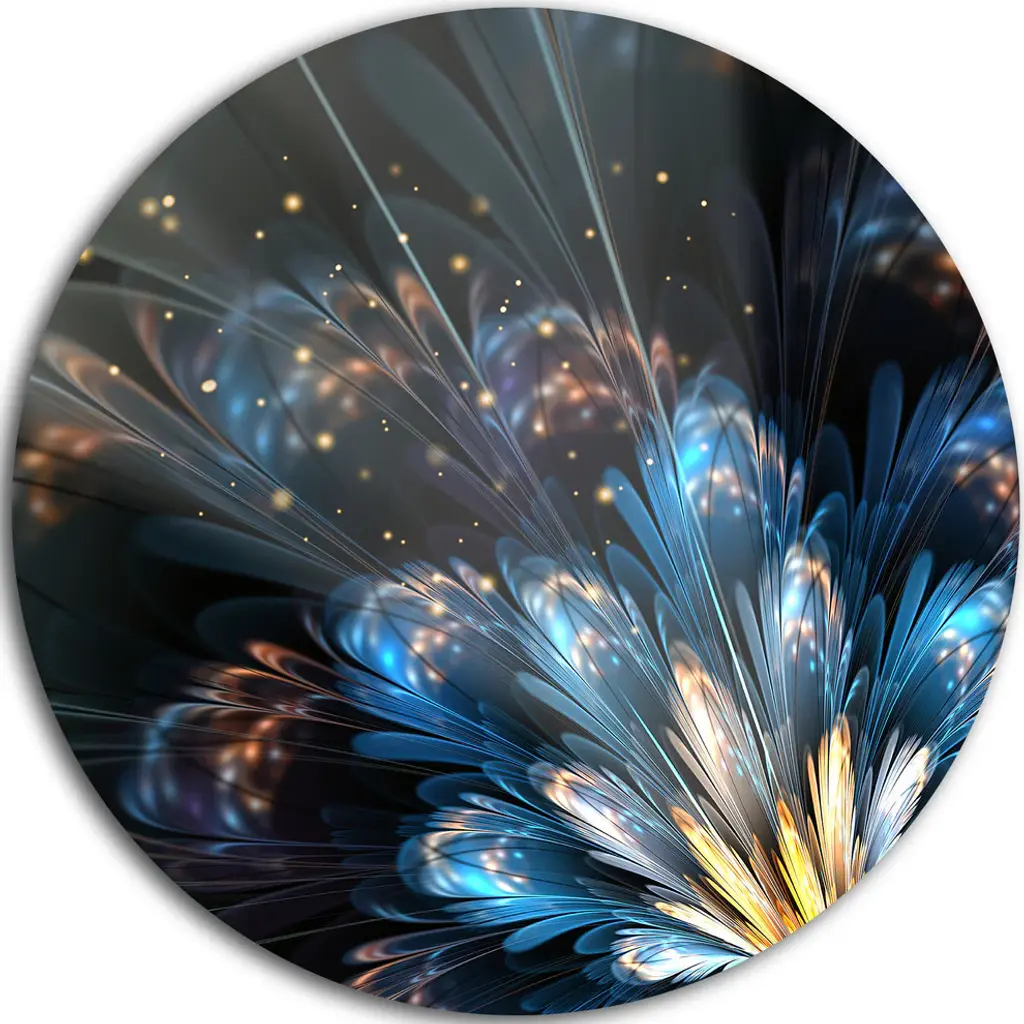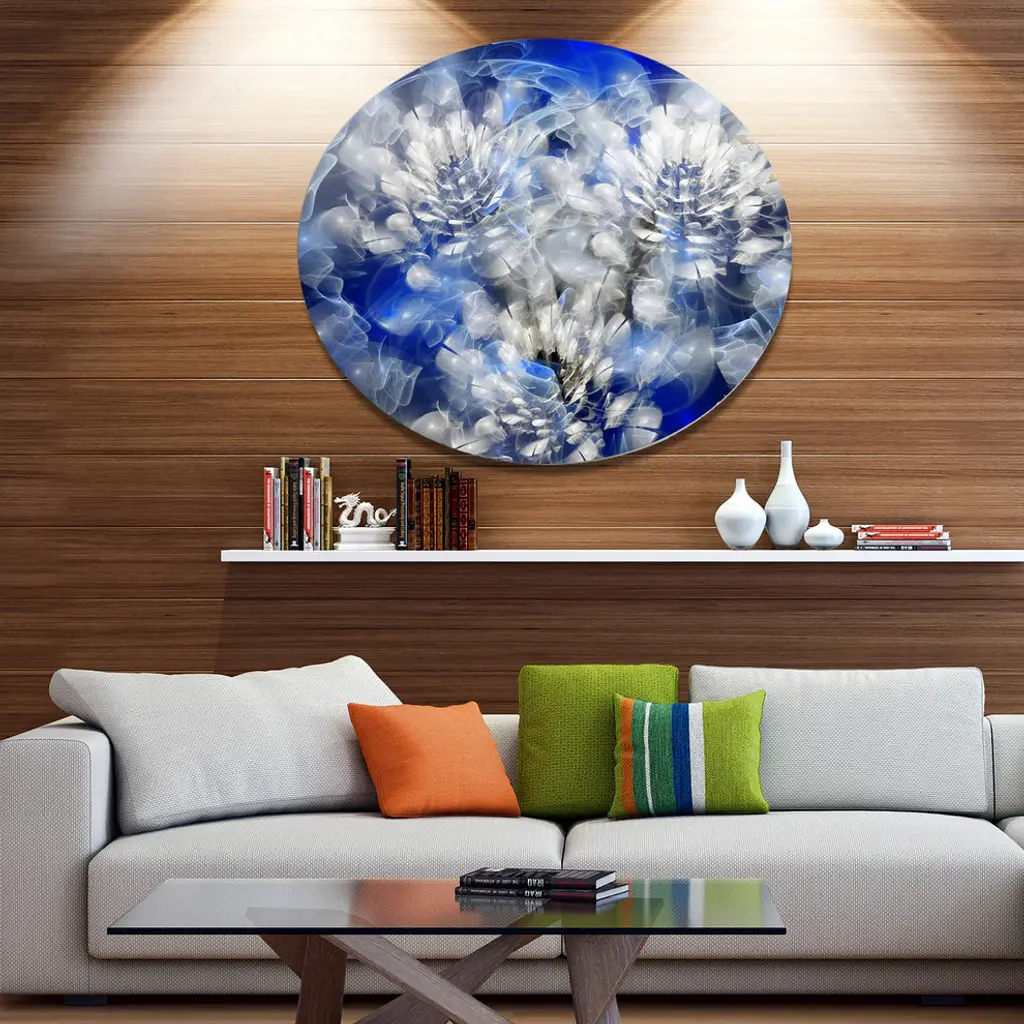 Bring Contemporary Abstraction to your home with this large Circle Metal wall art. This White Chrysanthemum Fractal Flower Metal Artwork makes it the focal point of any room or office. - White Gloss Coating ensures colors are extra vibrant with light reflection.- Aluminum grade Sheet Metal with 1 inch mounting frame on the back giving the illusion that the artwork is floating on the wall..- Mounting Brackets are included along with instructions.- High Quality Digital images are created directly into a glossy aluminum panel producing a stunning and captivating print into the glossy finish of the metal.- Water, Fire and Scratch resistant HD Aluminum panels.- Looks better than any photo paper and guaranteed to last at least 20 years- Easy to clean with a microfiber cloth. Colors are far superior to regular Canvas Art. - Easy to Hang