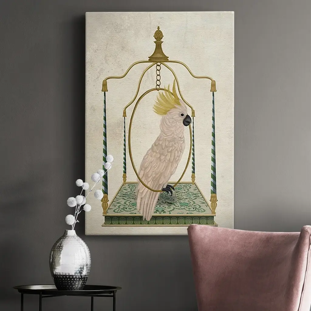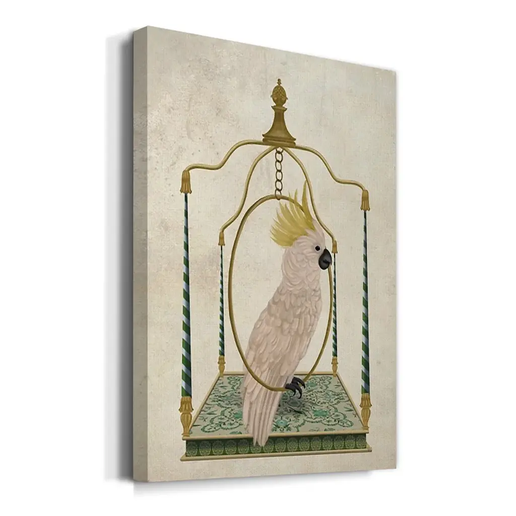 White Cockatoo On Swing Premium Gallery Wrapped Canvas - Ready To Hang - 18x27