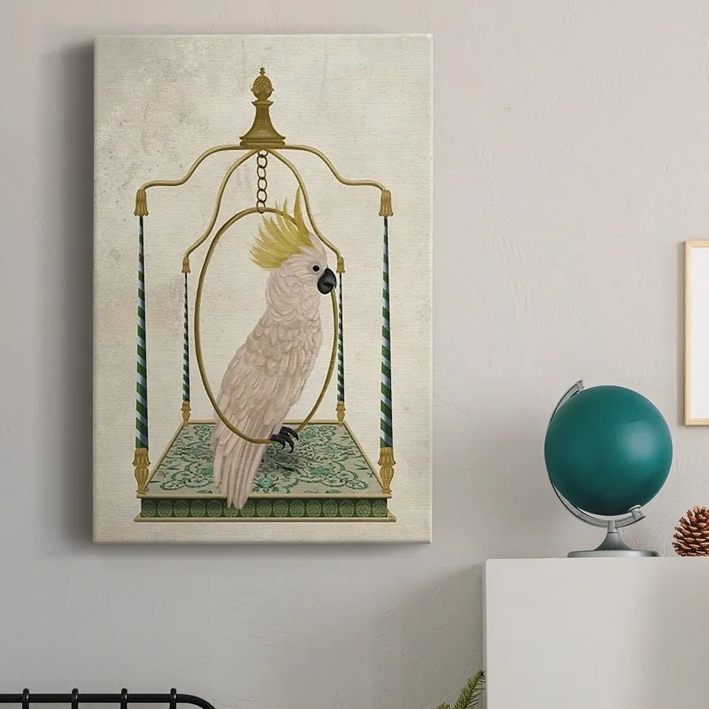 White Cockatoo On Swing Premium Gallery Wrapped Canvas - Ready To Hang - 40x60