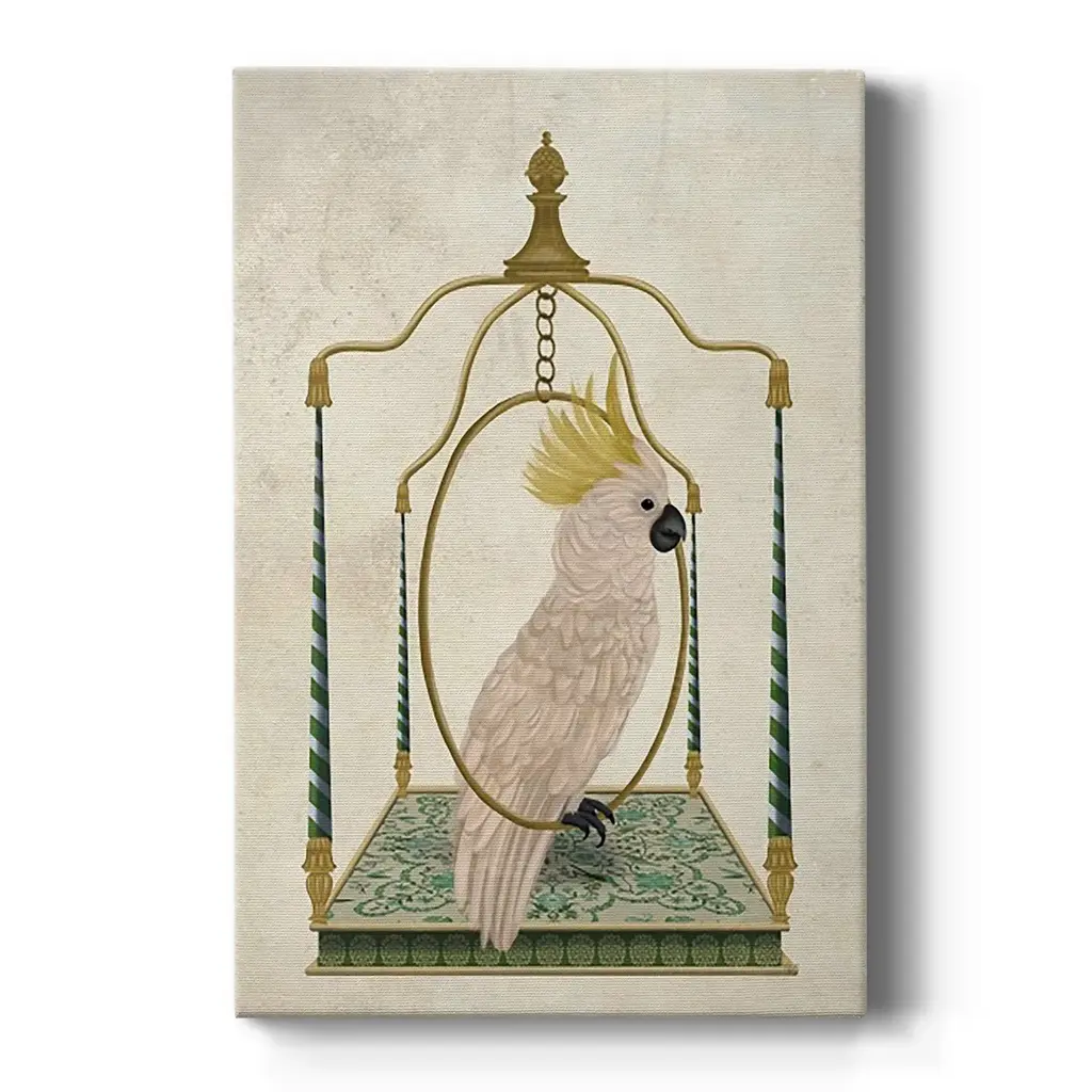 White Cockatoo on Swing Premium Gallery Wrapped Canvas - Ready to Hang A premium hand stretched gallery wrapped canvas print created to last. Featuring a beveled a solid wood stretcher bar, each piece comes ready to hand 6 SIZES AVAILABLE 8''X12'' - Overall Size 12''X18'' - Overall Size 18''X27'' - Overall Size 24''x36'' - Overall Size 32''x48'' - Overall Size 40''x60'' - Overall Size Each piece is made to order. Built to Last Each piece comes ready to hang Solid wood stretcher Fade and Water resistant Made domestically