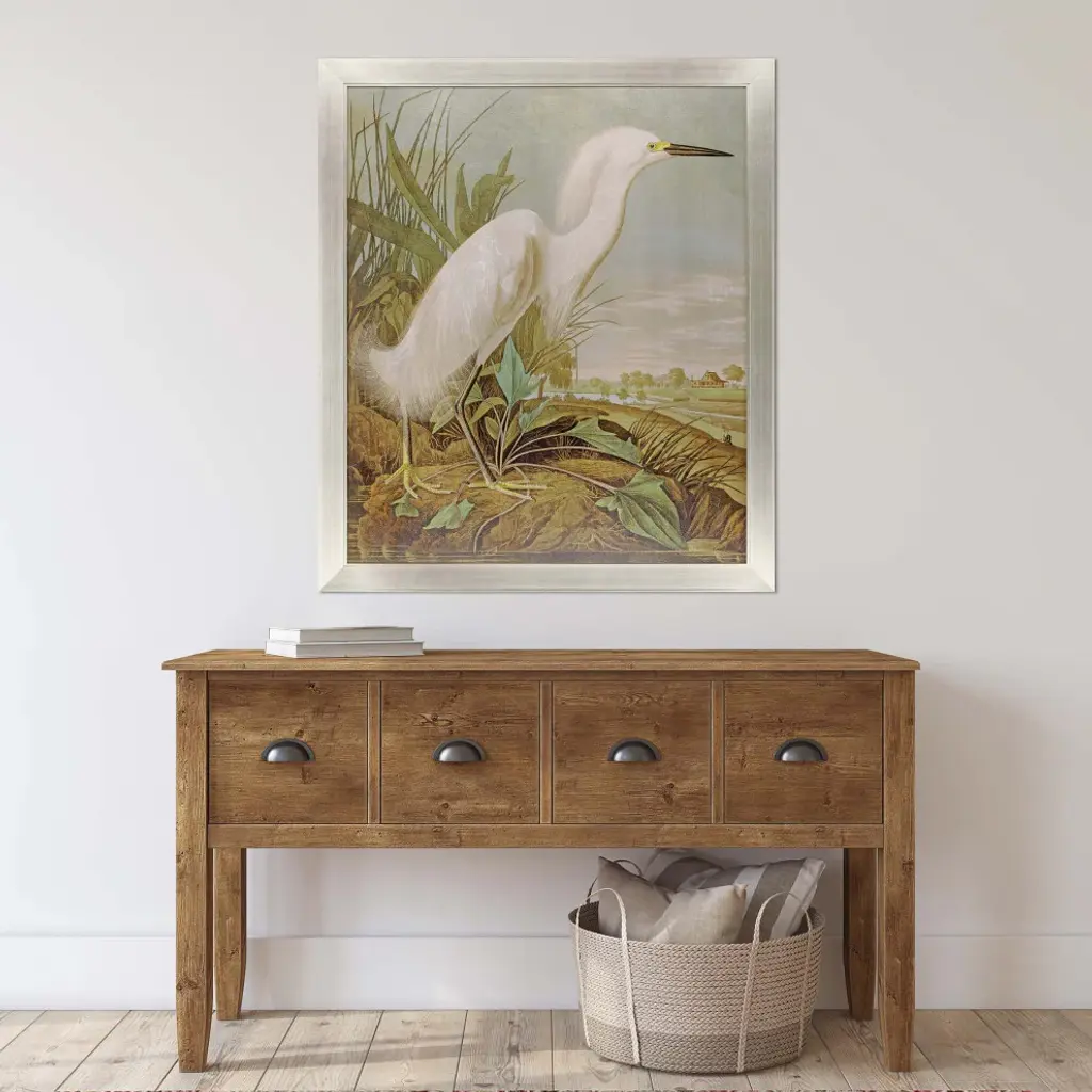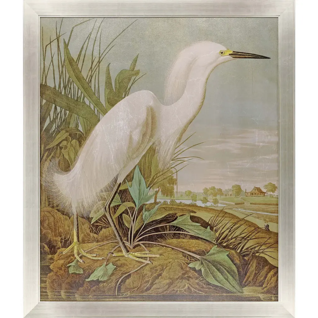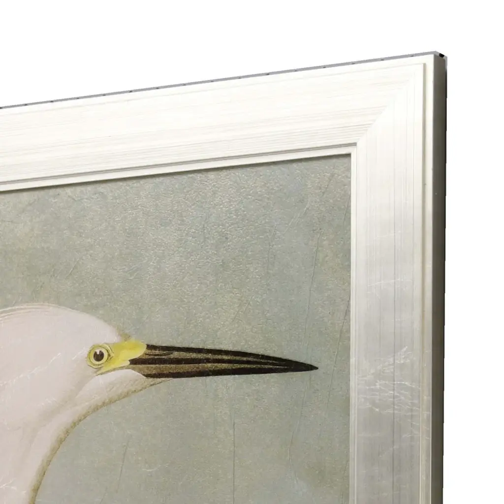 Exclusive hand embellished mixed media on wood. Framed in a modern silver leaf wood.