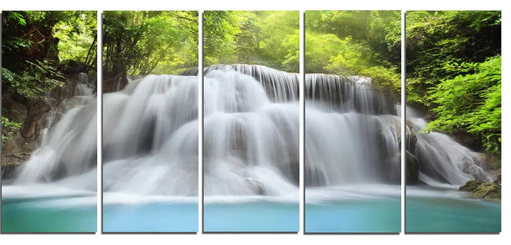 The White Erawan Waterfall canvas art print is sure to make an impression on anyone who sees it. This artwork is gallery wrapped around a 1-inch solid wood frame and arrives carefully packaged and entirely ready to hang on the wall. Design Art only uses the highest resolution and pigments to ensure a crisp colorful print that is never faded or pixelated. This artwork is sure to be a conversation starter in any home or office.