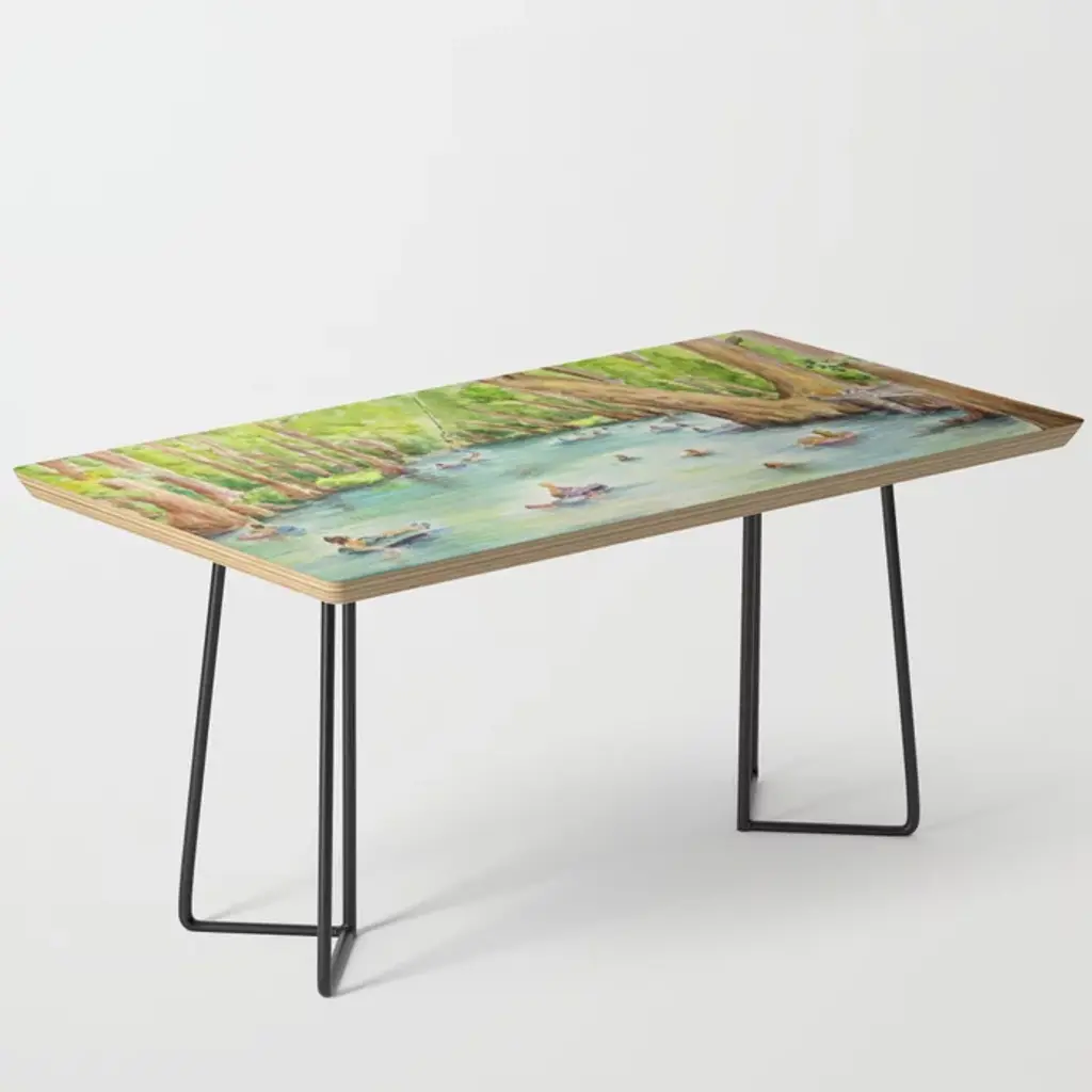 35.75" x 17.75" x 17" (H)Baltic birch table top with beveled edgeHigh quality print with satin finishSteel legs available in black or goldAssembly requiredEvery order is made just for youSHIPPING: Items are made to order and typically ship within 3-4 business days. Click here for more information about delivery options.Furniture sales are final. Click here for more information on returns.