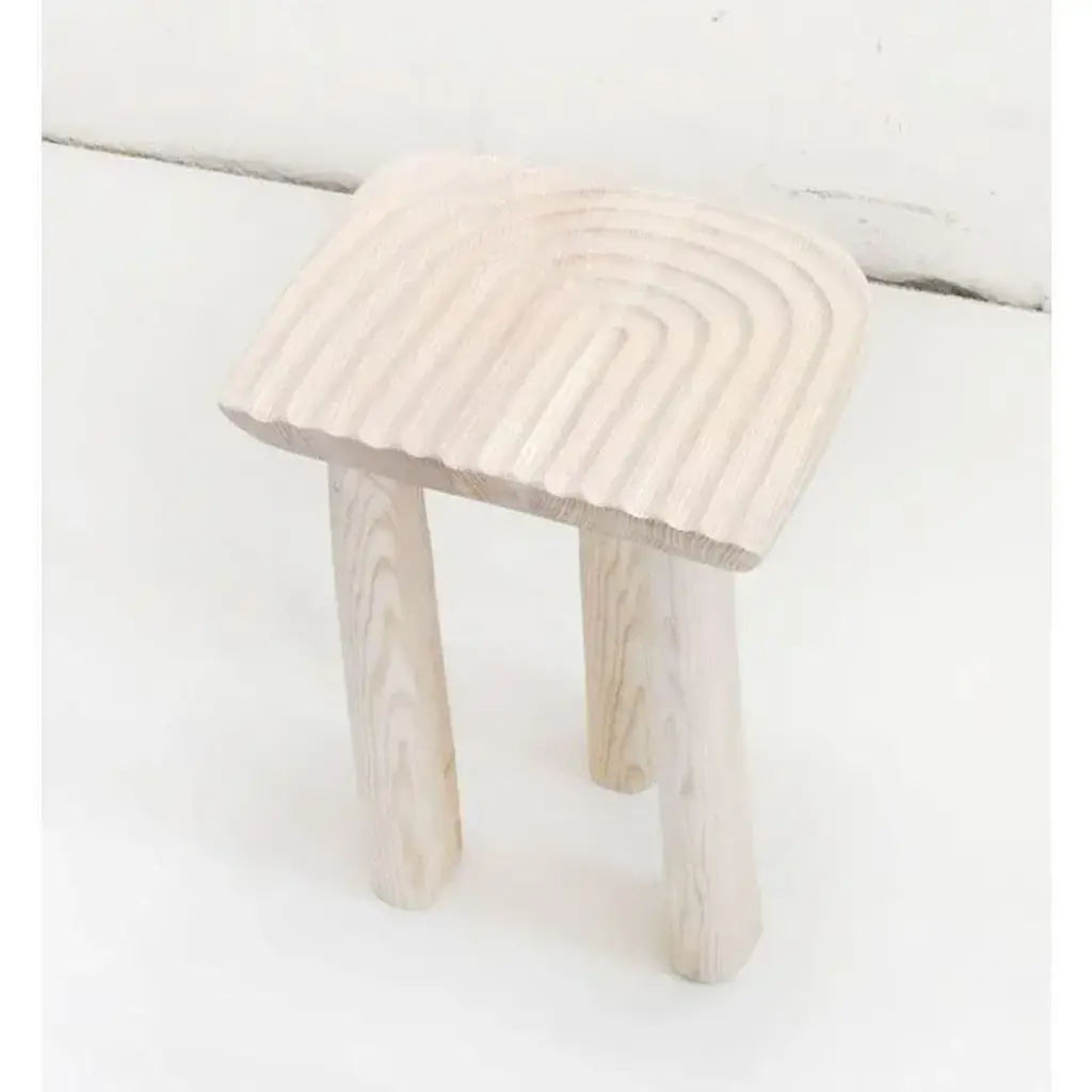 White fingerprint stool by Victor Hahner Each piece is unique, handmade by the designer and signed Dimensions: W39,5x D27 x H 49 cm Materials: White ash Also Available: Blue and Black Fingerprint Stool