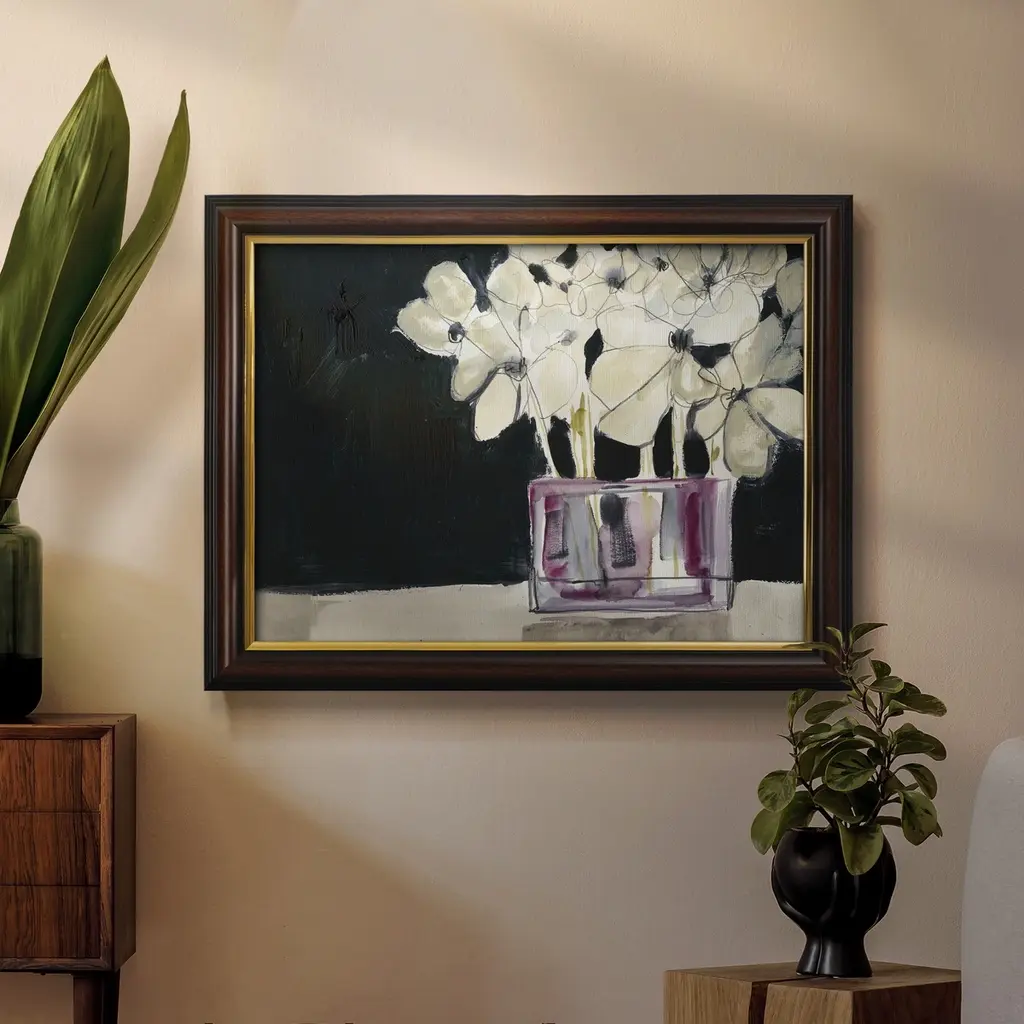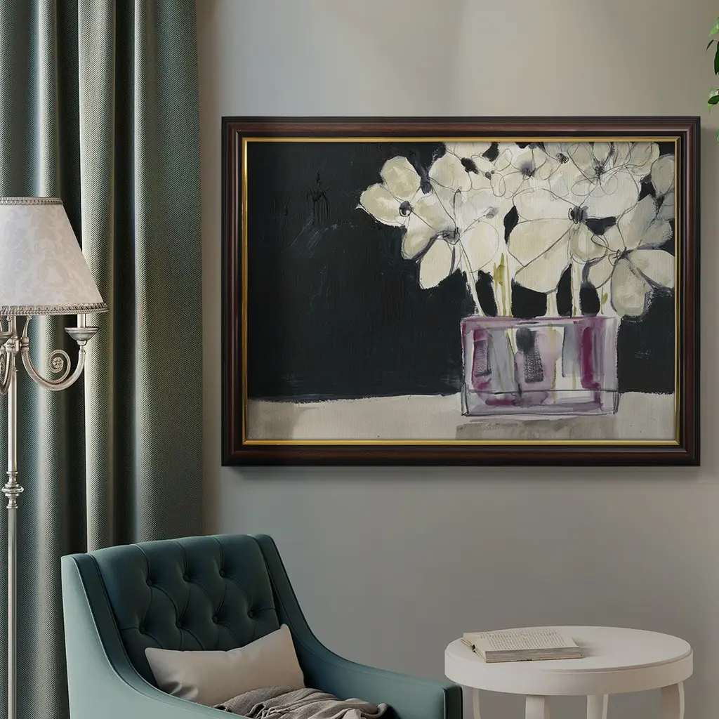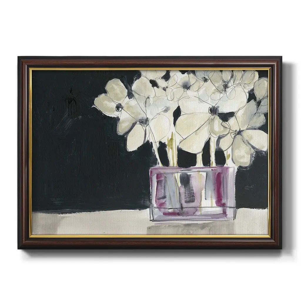 White Flowers In Fuchsia I Premium Framed Canvas- Ready To Hang - 18x27 - Mahogany