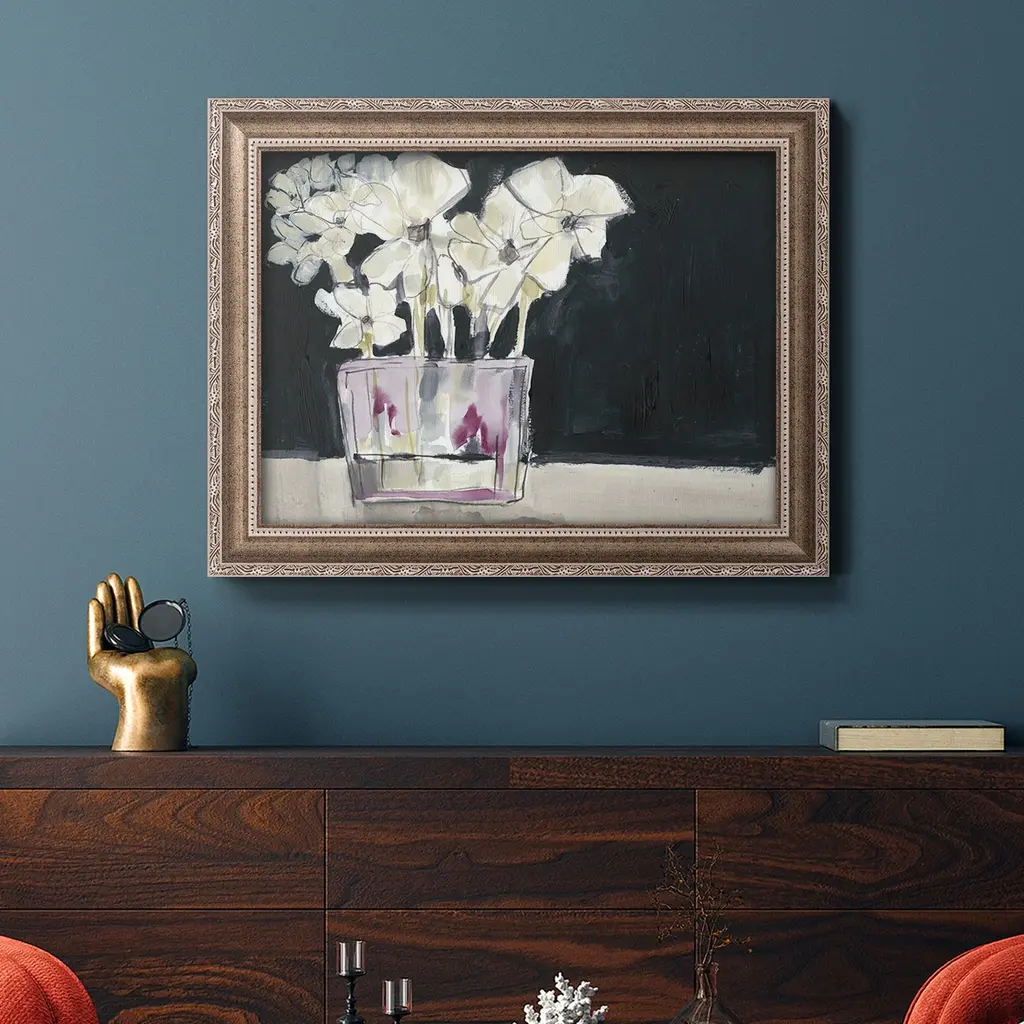 White Flowers In Fuchsia Ii Premium Framed Canvas- Ready To Hang - 24x36 - Pewter