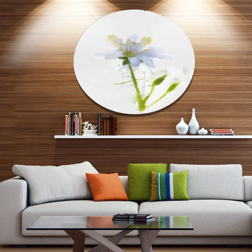 White Green Watercolor Flower Sketch, Floral Disc Metal Wall Art, 36"