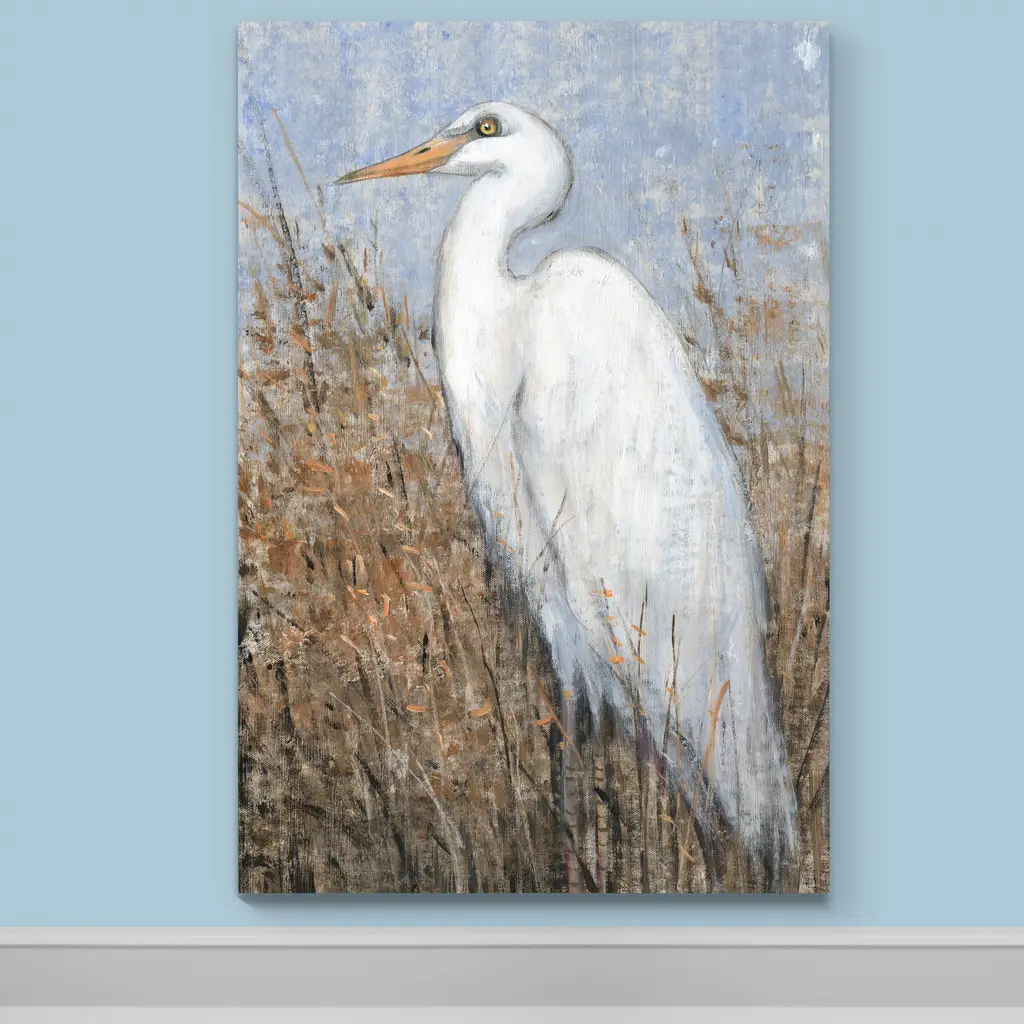 White Heron II -Premium Gallery Wrapped Canvas - Ready to Hang A premium hand stretched gallery wrapped canvas print created to last. Featuring a beveled a solid wood stretcher bar, each piece comes ready to hand 5 SIZES AVAILABLE 8''X12'' - Overall Size 16''x20'' - Overall Size 18''x27'' - Overall Size 24''x36'' - Overall Size 32''x48'' - Overall Size Each piece is made to order. Built to Last Each piece comes ready to hang Solid wood stretcher Fade and Water resistant Made domestically