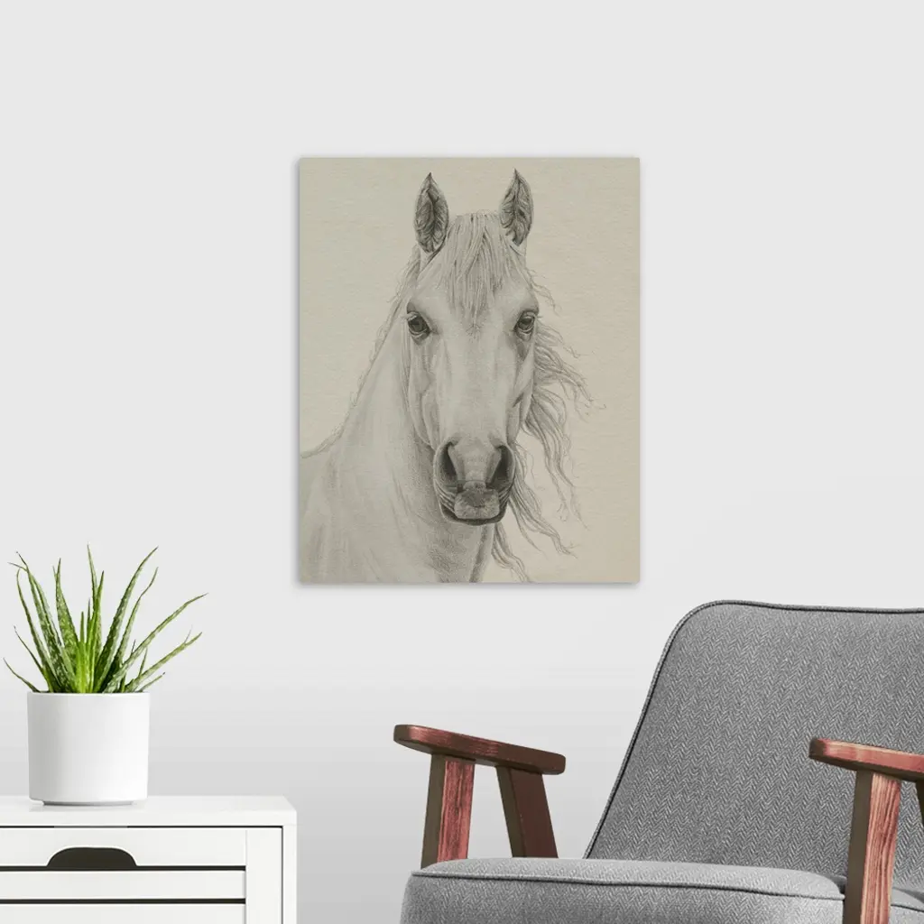White Horse Portrait I wall art for home and office decor. Discover canvas art prints, photos, mural, big canvas art and framed wall art in GreatBigCanvas.com's varied collections.