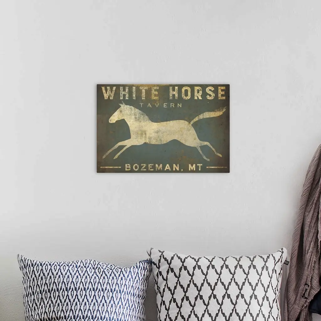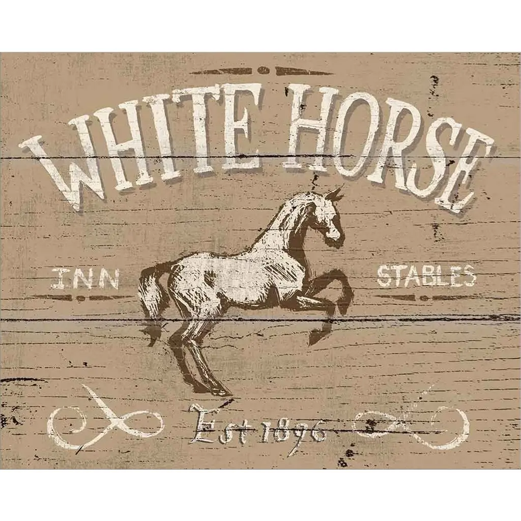 Contemporary rustic artwork of a worn and weathered sign for a pub.