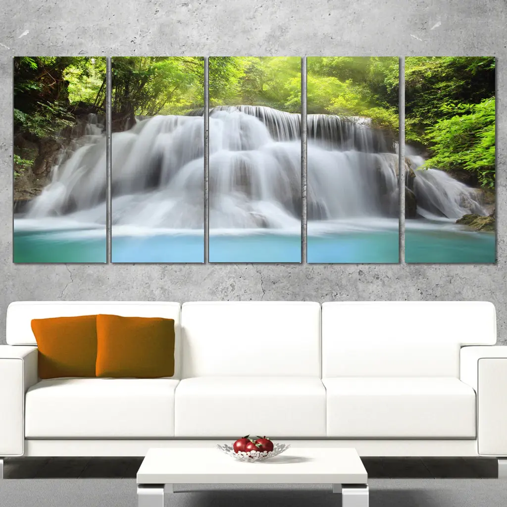 "White Huai Mae Kamin Waterfall" Canvas Print, 5 Panels, 60"x28"