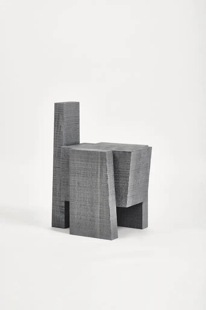 White layered oak wood stool I by Hyungshin Hwang.Dimensions: D 33 x W 54 x H 69 cm.Materials: oxidized red oak.Layered Series is the main theme and concept of work of Hwang, who continues his experiment which is based on architectural composition of layering materials we can easily find around us. This series starts from his childhood memory of an incessantly transforming city with full of geometric architecture. Ever since the beginning of his career when he piled up discarded bricks or concrete pieces to make simple pieces of artwork, he has always experimented with layering.Born in Seoul, 1981, Hyungshin Hwang is a Korean designer based in Seoul. He graduated B.F.A and M.F.A from Hongik University. Currently working in Seoul he has produced a variety of objects and is participating in various projects. He has been articulating ordinary experiences and past memories through creating objects and recently continues his work with his idea of ‘layered series’. These objects premiered at KIAF in 2007, and have since been presented in various shows including DMY Berlin Design Festival.