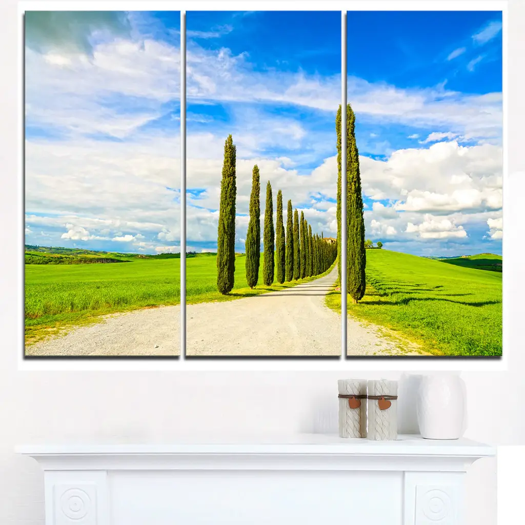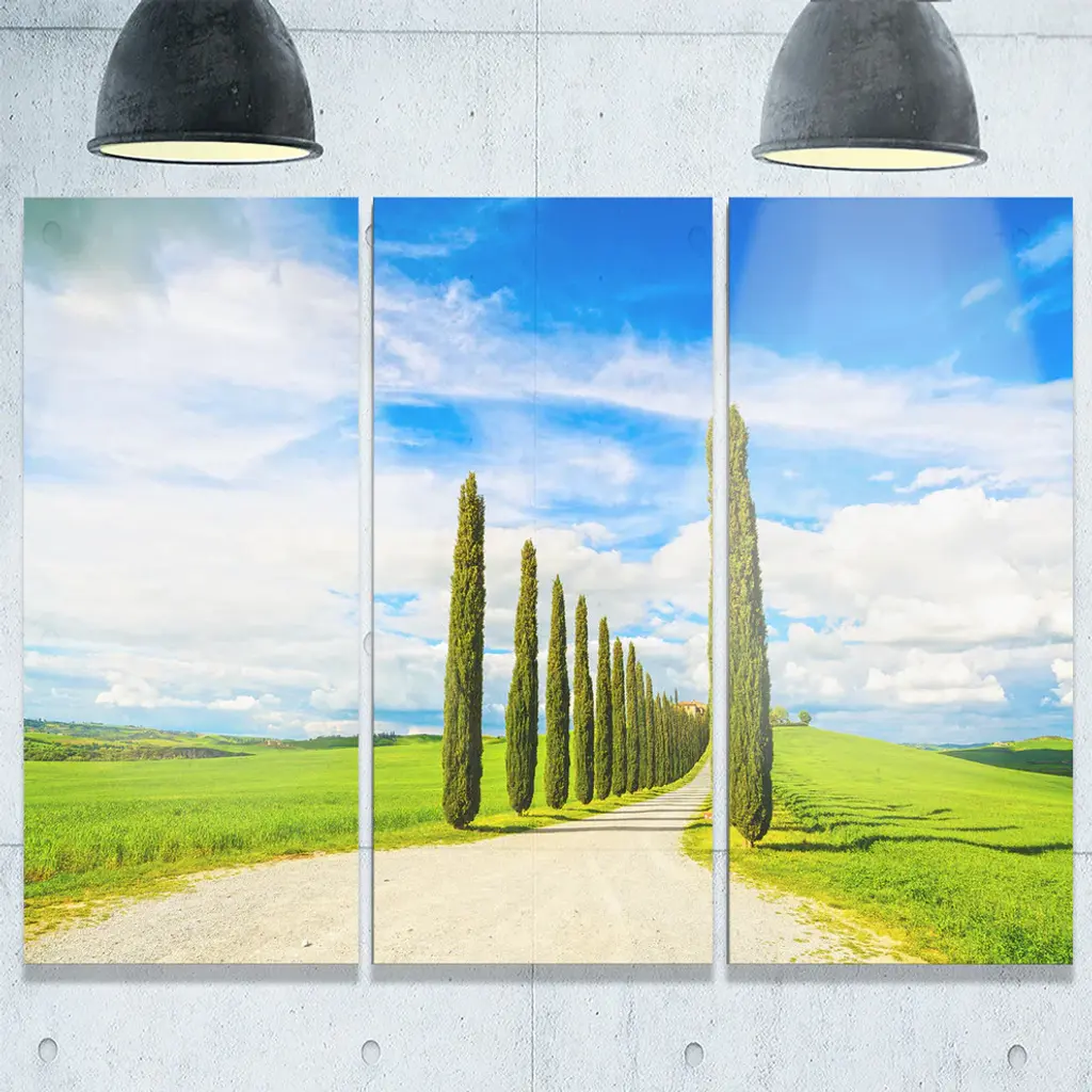 "White Road Through Cypress Trees" Metal Wall Art, 3 Panels, 36"x28"