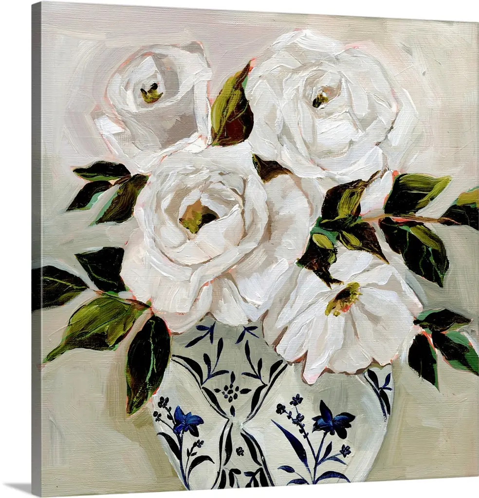 Painted so realistically that the viewer could almost smell their fragrances. The canvas painting will arrive stretched and ready for you to frame to match your decor.