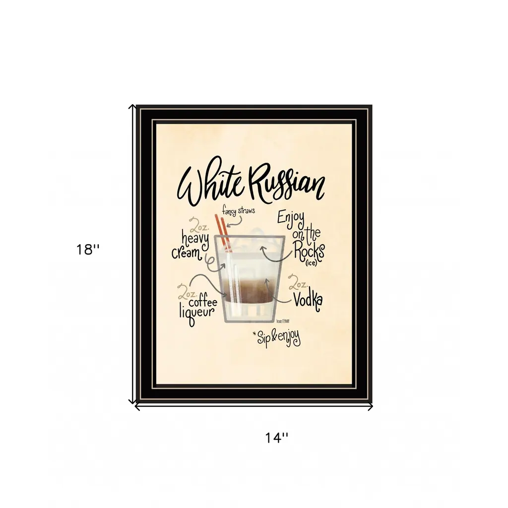 Unique and decorative, this white russian black framed print wall art will leave a lasting impression. This print is a visual artistic expression that allows you to decorate your space in style. Reproduced for you on wood, this hanging decorative accent will be a trendy and fashionable way to dress your walls in a rustic and modern farmhouse vibe. Adding this hanging wall art to your space to make your room feel more finished and attractive. Utilize this opportunity to create a focal point in the room with this fabulous wall decor option. 18" H x 14" W x 1" D