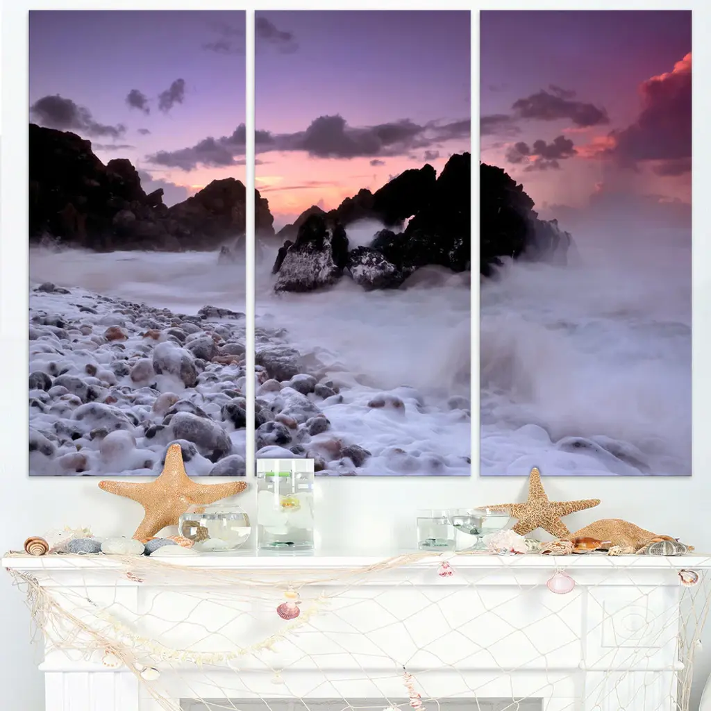 "White Sand At Abano Beach Portugal" Metal Wall Art, 3 Panels, 36"x28"