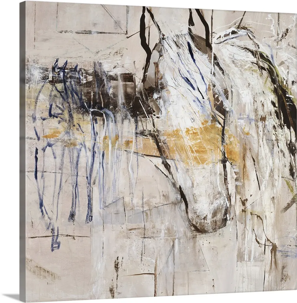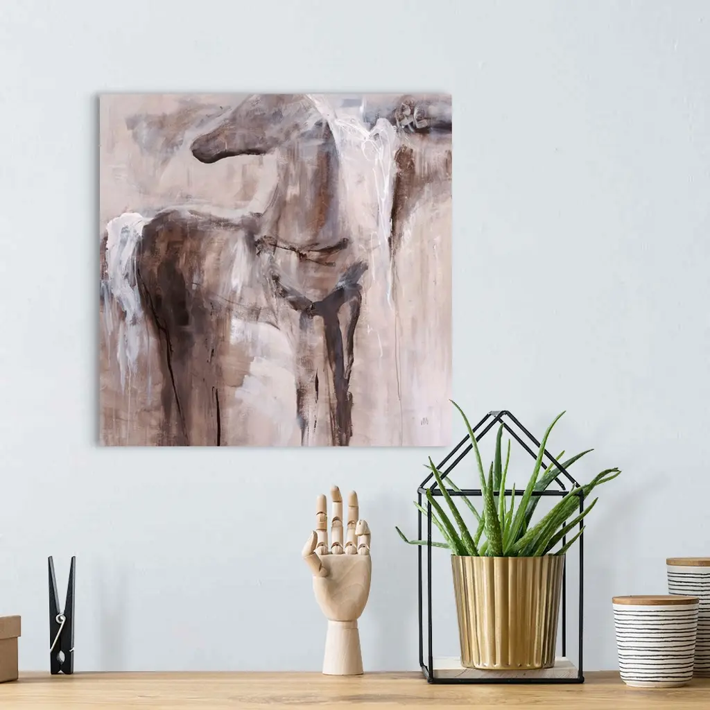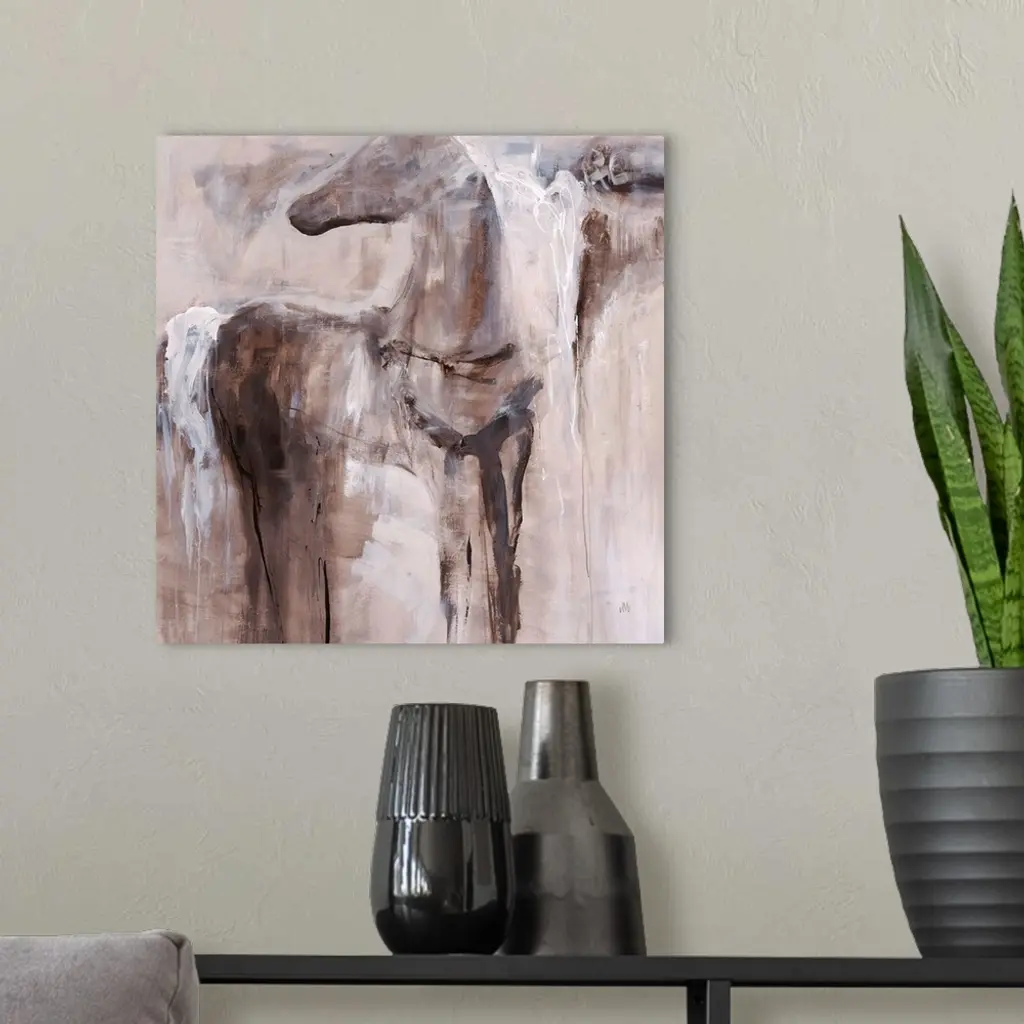 Abstract painting of a figure of a horse fading into the background of earthy tones.