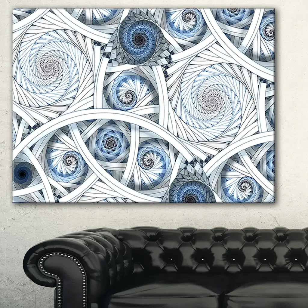 The White Spiral with Blue Fractal Art canvas art print is sure to make an impression on anyone who sees it. This artwork is gallery wrapped around a 1-inch solid wood frame and arrives carefully packaged and entirely ready to hang on the wall. Design Art only uses the highest resolution and pigments to ensure a crisp colorful print that is never faded or pixelated. This artwork is sure to be a conversation starter in any home or office.