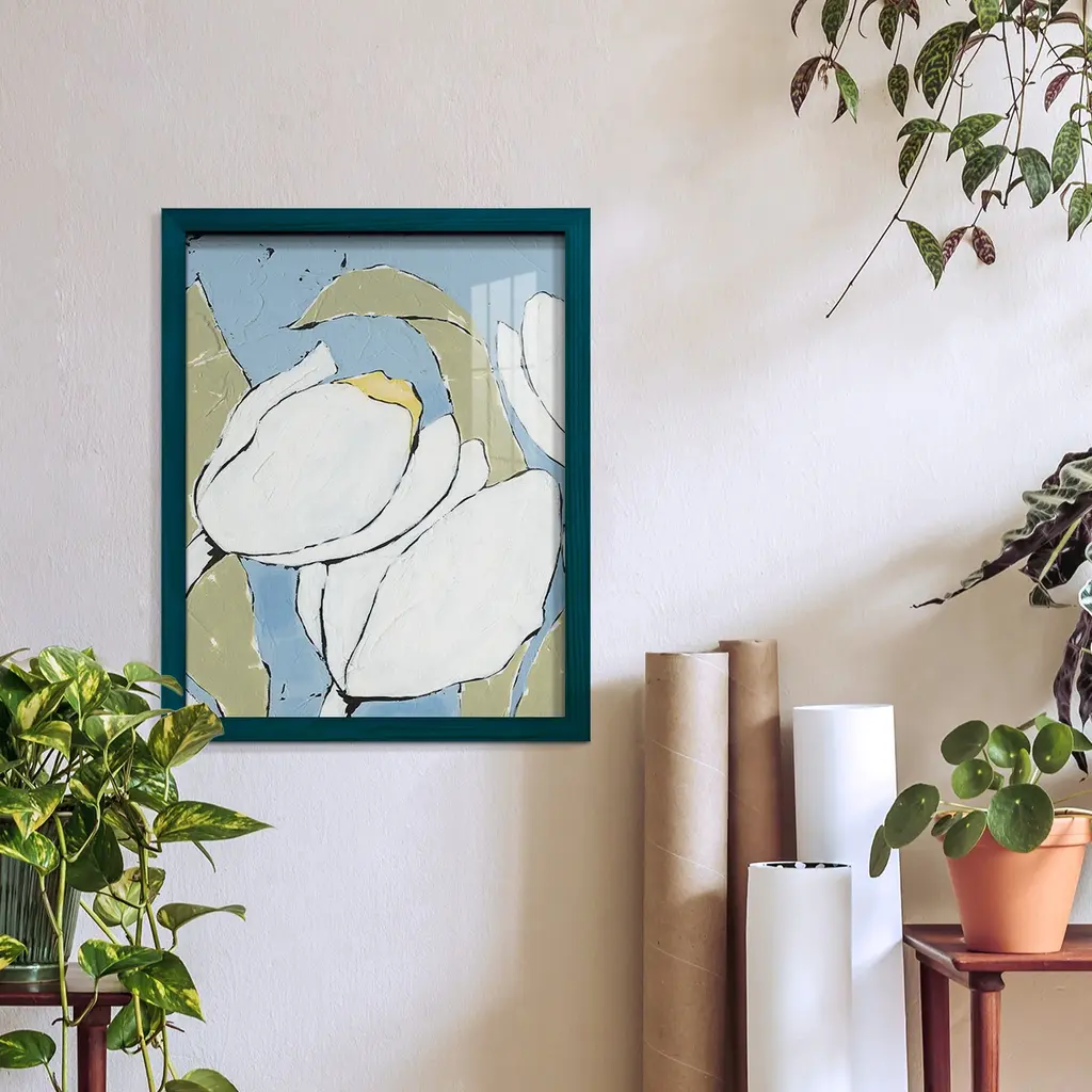 White Tulip Triptych II -EZ SWITCH Framed Print w/glass-Cherry Red A delightful, framed print. Featuring a solid wood frame with real wood glass. This premium print is giclee quality. In addition, every frame features a removable back and table top stand. This allows you to change your art in the future or to just stand the art on a table for a new look. We are sure you'll enjoy our new series of EZ SWITCH Framed Art. Solid Wood Frame Real Glass Removable / Replaceable Art Built in Tabletop Stand Sizes range from 4x6 up to 12x15 - buy just one or pair them up as sets as you see fit.