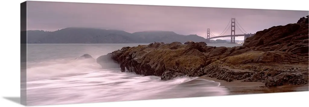 "White Waves Hitting Rocky Seashore" Seashore Canvas Print, 40"x20"