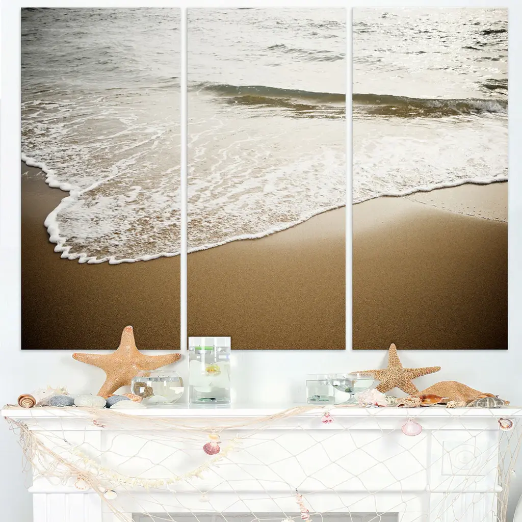 "White Waves In Mediterranean Sea" Metal Wall Art, 3 Panels, 36"x28"