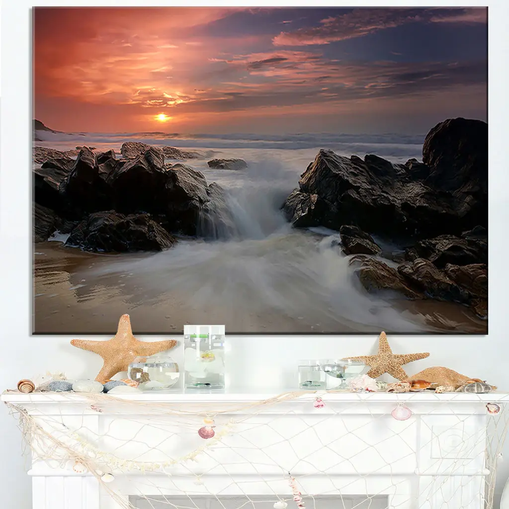 The White Waves Rushing Between Rocks canvas art print is sure to make an impression on anyone who sees it. This artwork is gallery wrapped around a 1-inch solid wood frame and arrives carefully packaged and entirely ready to hang on the wall. Design Art only uses the highest resolution and pigments to ensure a crisp colorful print that is never faded or pixelated. This artwork is sure to be a conversation starter in any home or office.