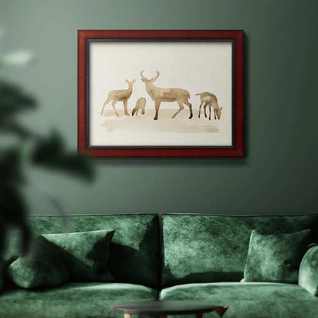 Whitetail Herd I Premium Framed Canvas- Ready To Hang - 16x20 - Mahogany