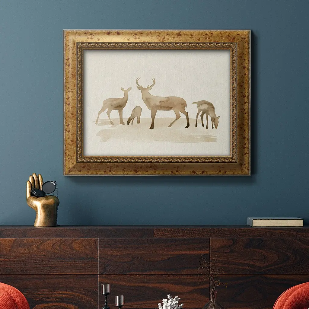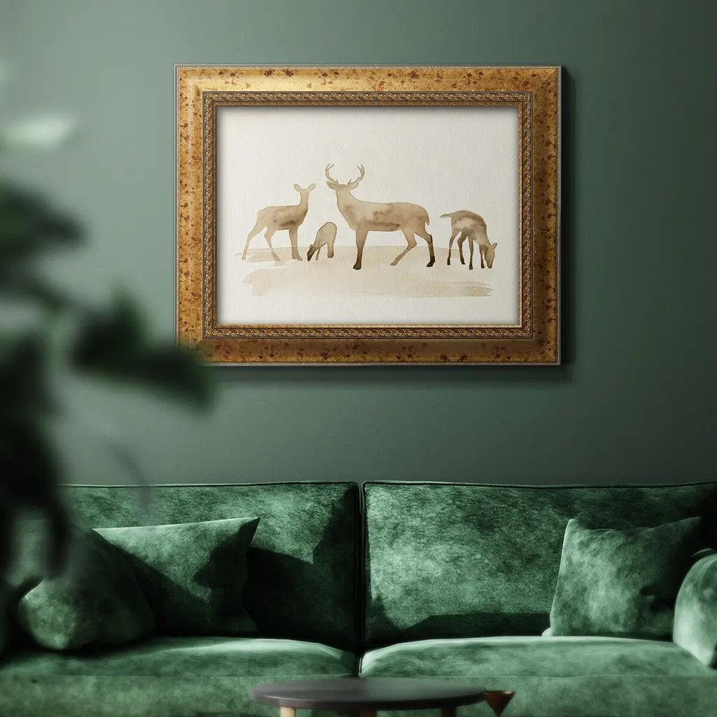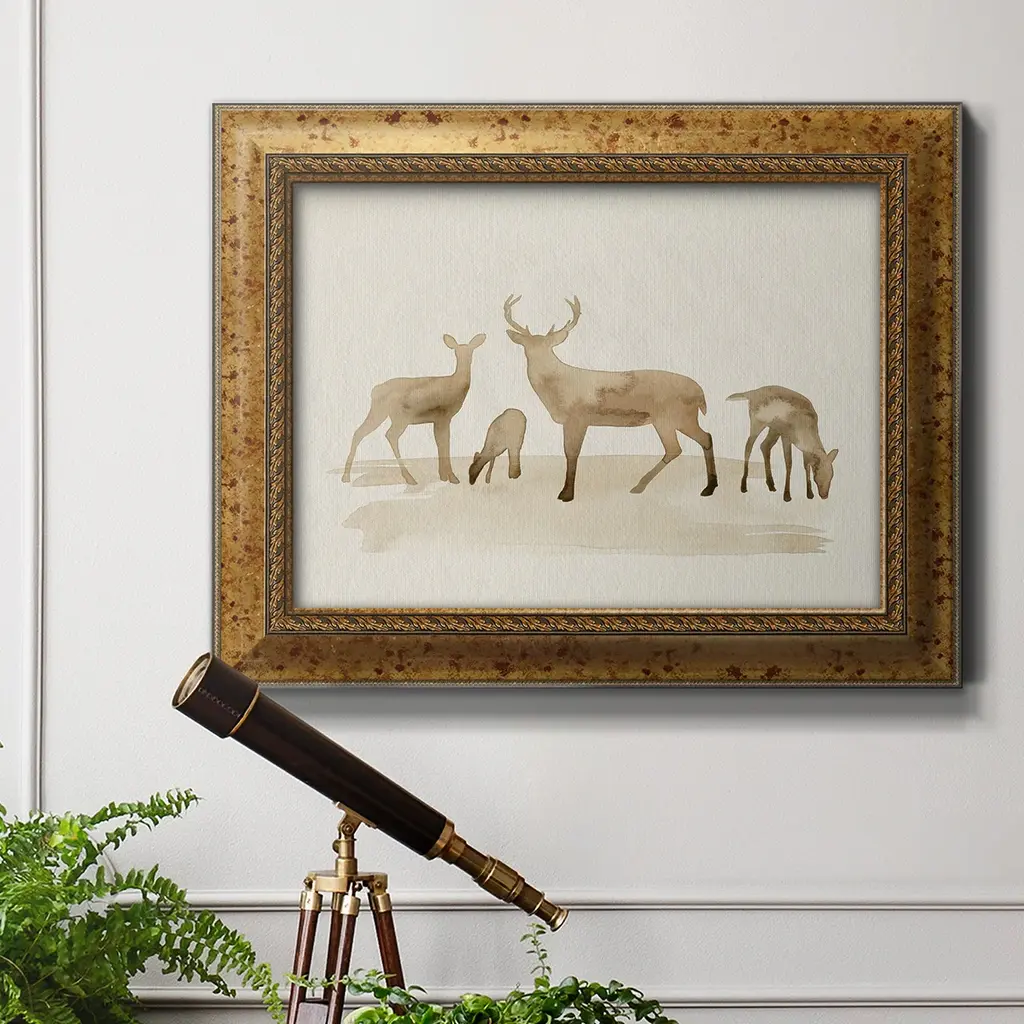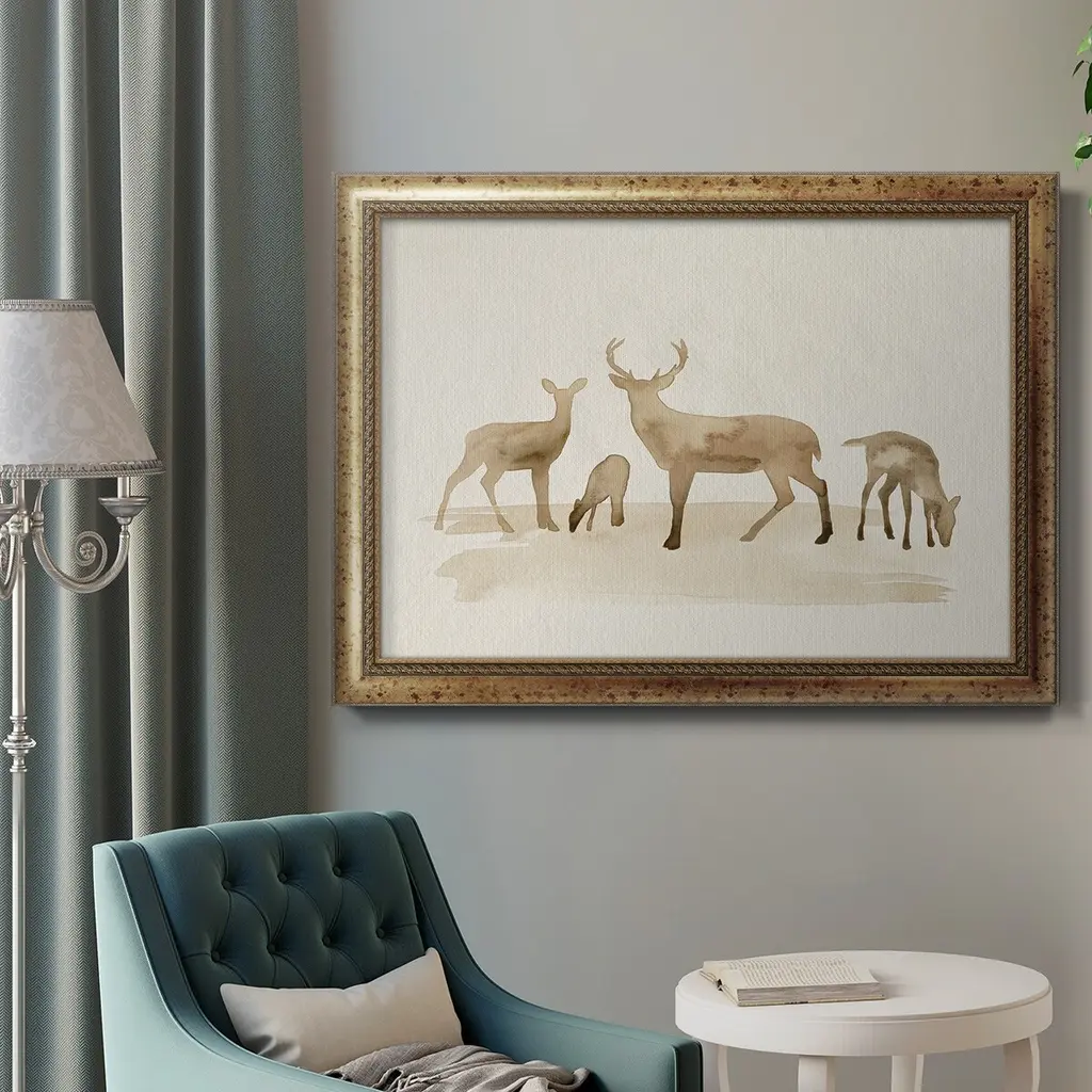 Whitetail Herd I Premium Framed Canvas- Ready To Hang - 18x27 - Gold