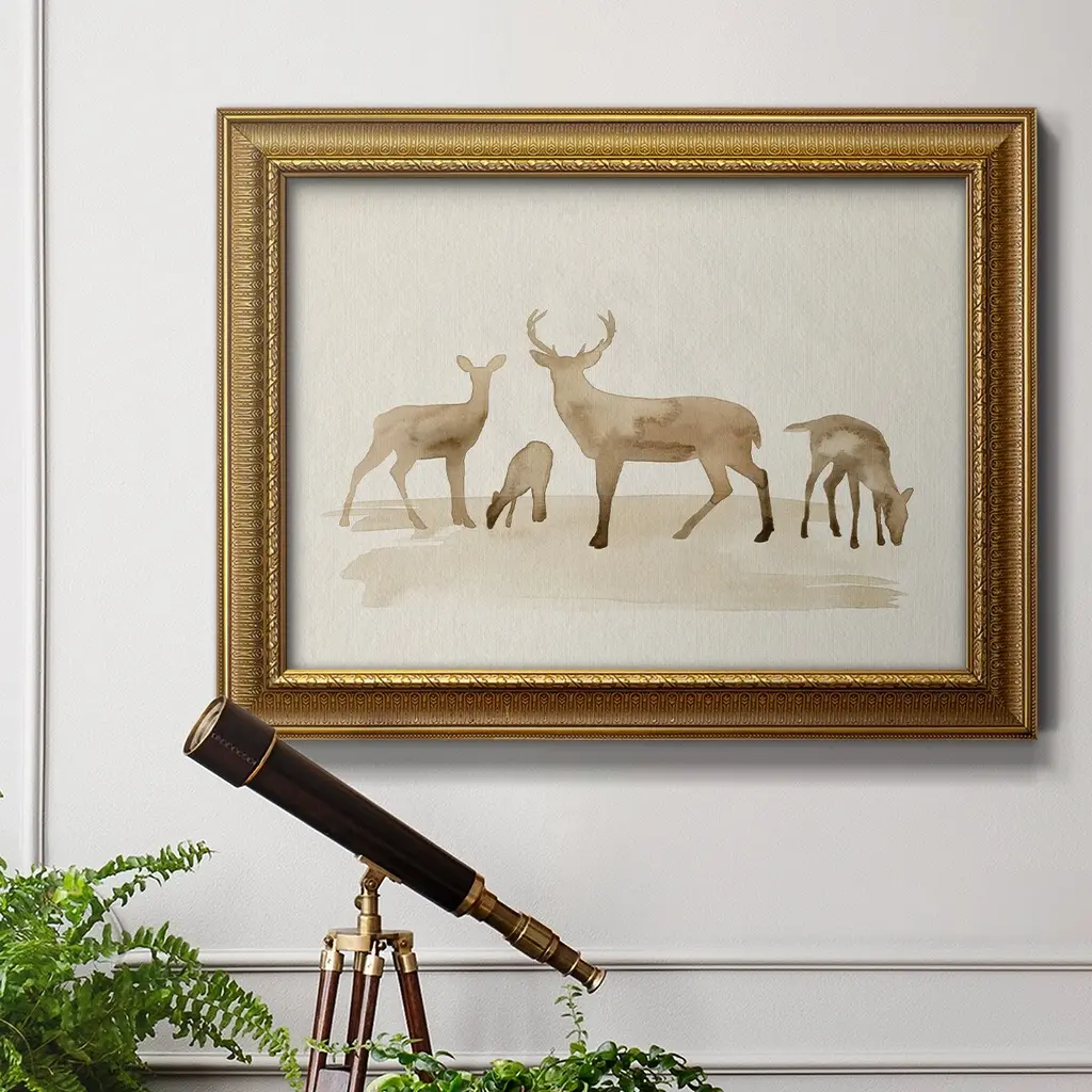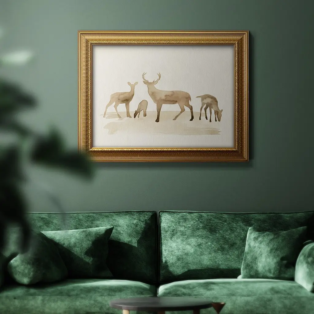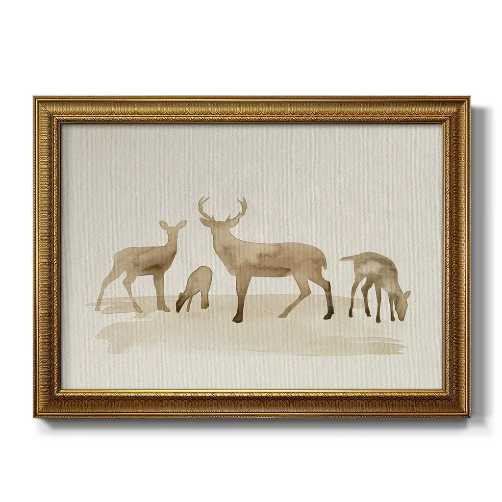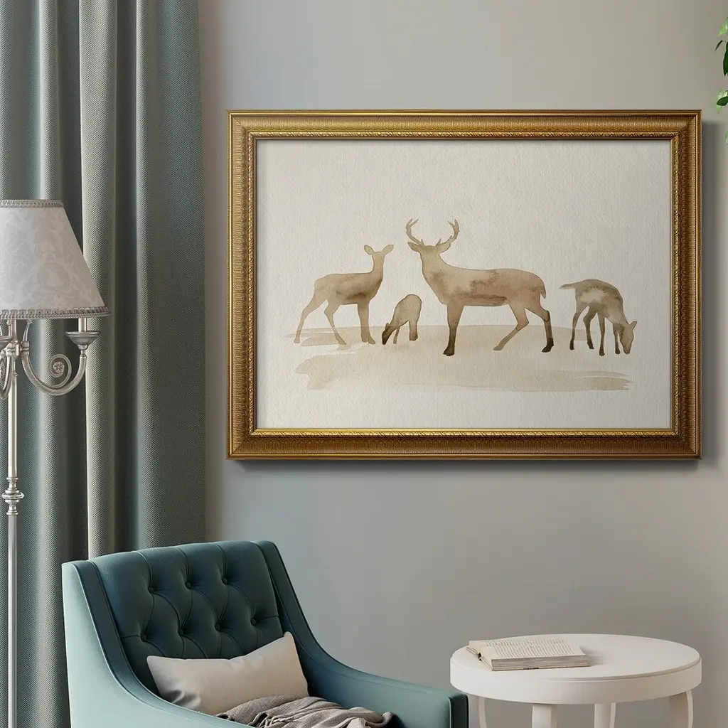 Whitetail Herd I Premium Framed Canvas- Ready To Hang - 18x27 - Gold