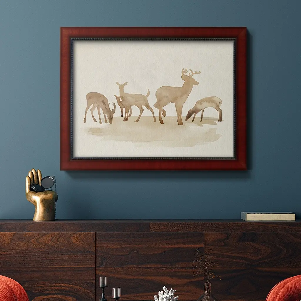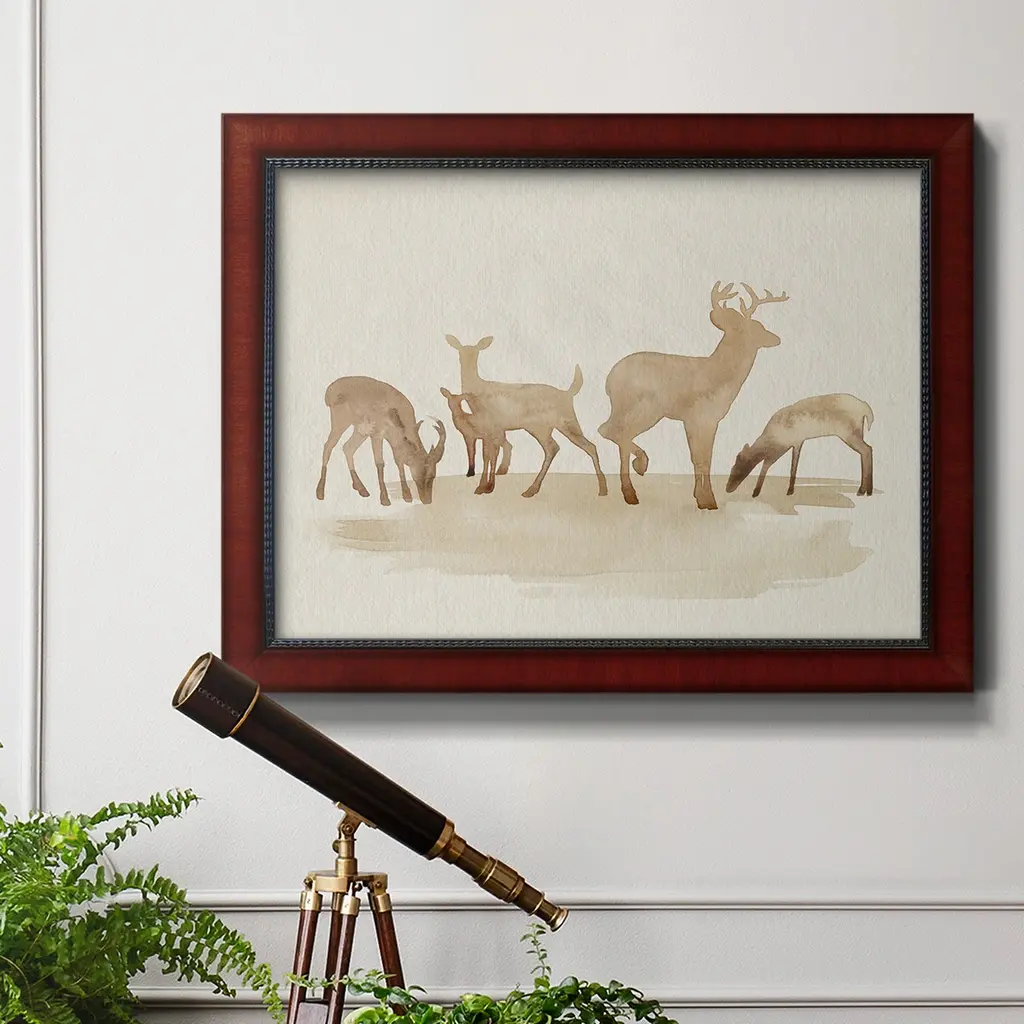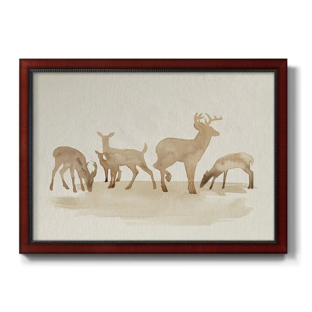 Whitetail Herd Ii Premium Framed Canvas- Ready To Hang - 24x36 - Mahogany
