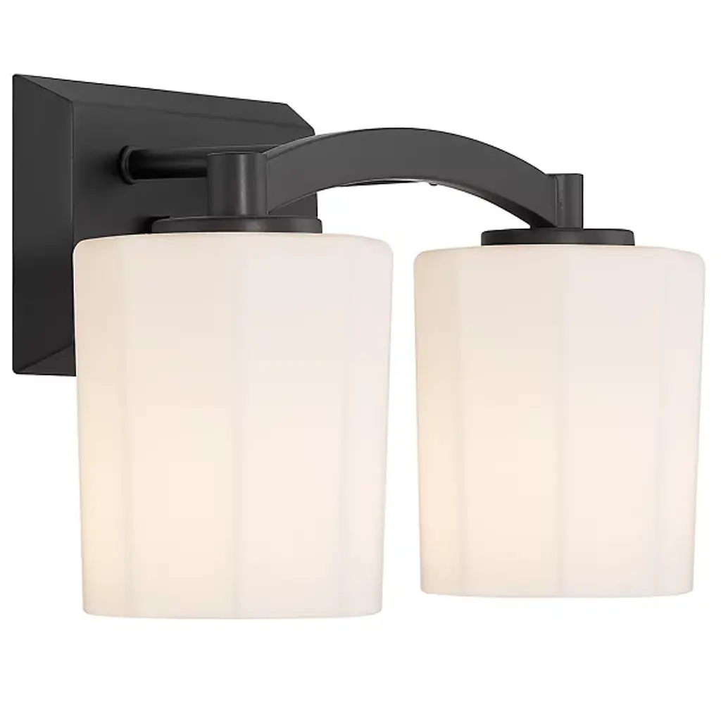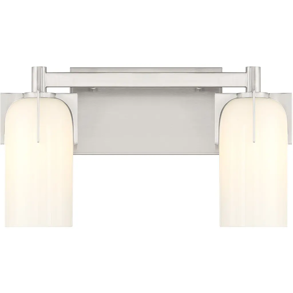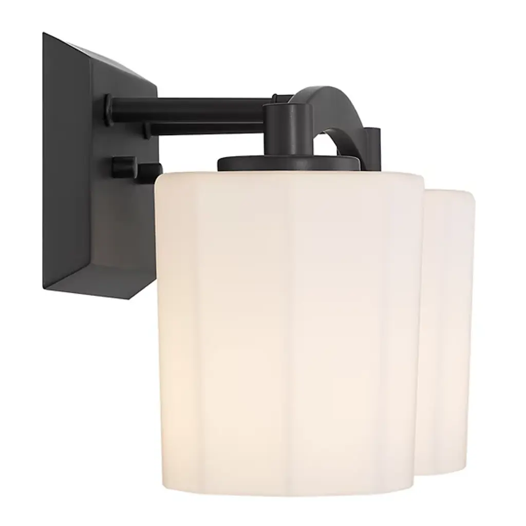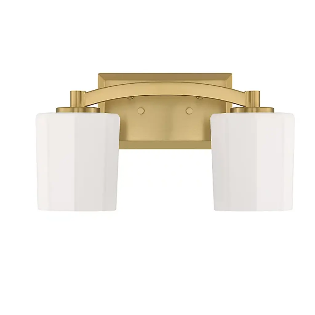 Create an enchanting ambiance that transforms any space into a sanctuary of sophistication with the Whitney Vanity Light from Savoy House. An inspired design that pairs vintage glam and timeless charm, it extends from a bevel-edged rectangular wall plate, while opal etched glass fluted shades mellow bright light to cast a flattering and inviting glow. The curving arm lends intrigue to the stark metal planes of the wall mount, while the warm metal finish ensures a sleek elegance.