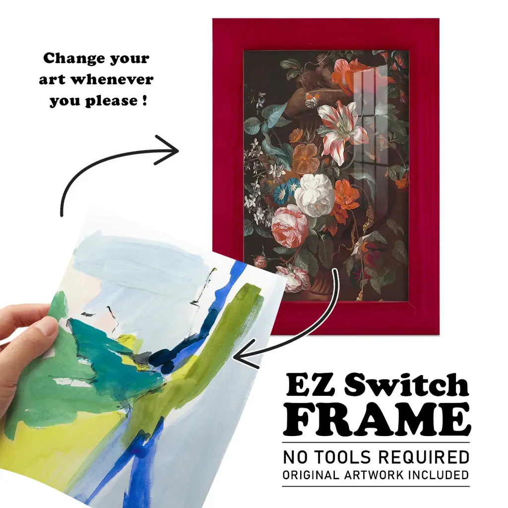 Wicklow II -EZ SWITCH Framed Print w/glass-Cherry Red A delightful, framed print. Featuring a solid wood frame with real wood glass. This premium print is giclee quality. In addition, every frame features a removable back and table top stand. This allows you to change your art in the future or to just stand the art on a table for a new look. We are sure you'll enjoy our new series of EZ SWITCH Framed Art. Solid Wood Frame Real Glass Removable / Replaceable Art Built in Tabletop Stand Sizes range from 4x6 up to 12x15 - buy just one or pair them up as sets as you see fit.