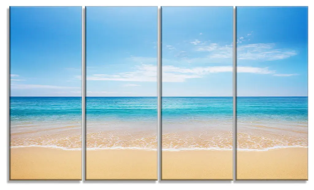 "Wide Blue Sky Over Beach" Seashore Canvas Photo Print, 4 Panels, 48"x28"