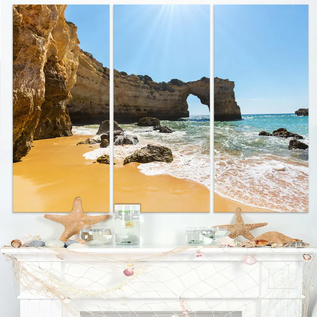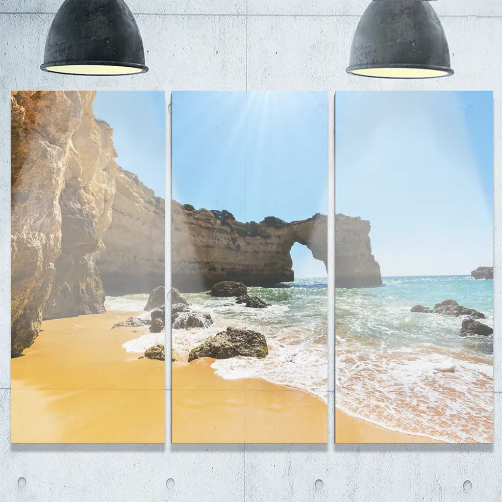 "Wide Portugal Beach With White Waters" Beach Metal Wall Art, 3 Panels, 36"x28"