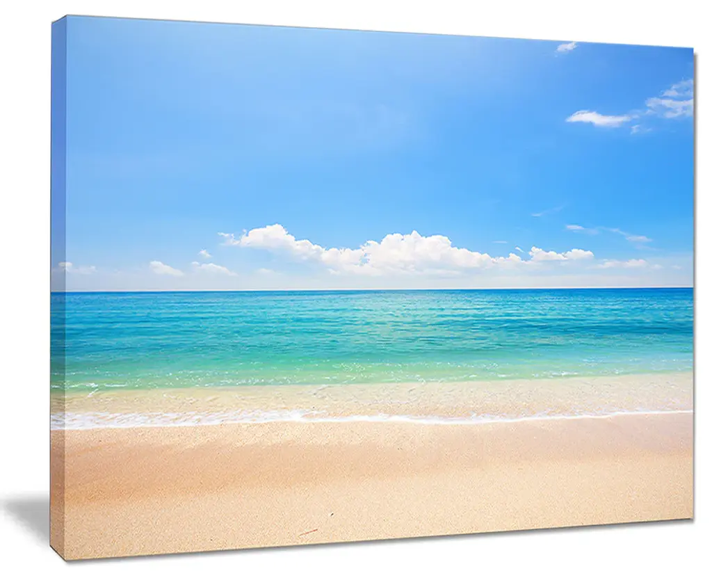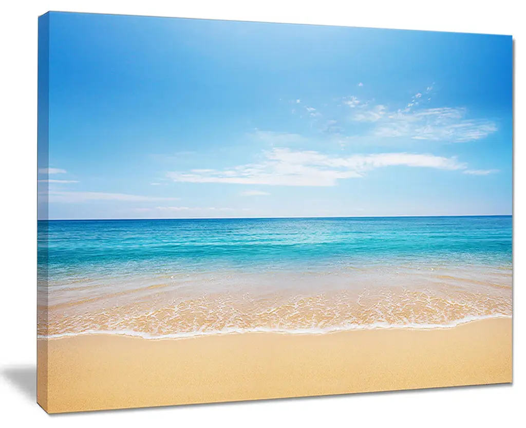The Wide View of Tropical Beach canvas art print is sure to make an impression on anyone who sees it. This artwork is gallery wrapped around a 1-inch solid wood frame and arrives carefully packaged and entirely ready to hang on the wall. Design Art only uses the highest resolution and pigments to ensure a crisp colorful print that is never faded or pixelated. This artwork is sure to be a conversation starter in any home or office.